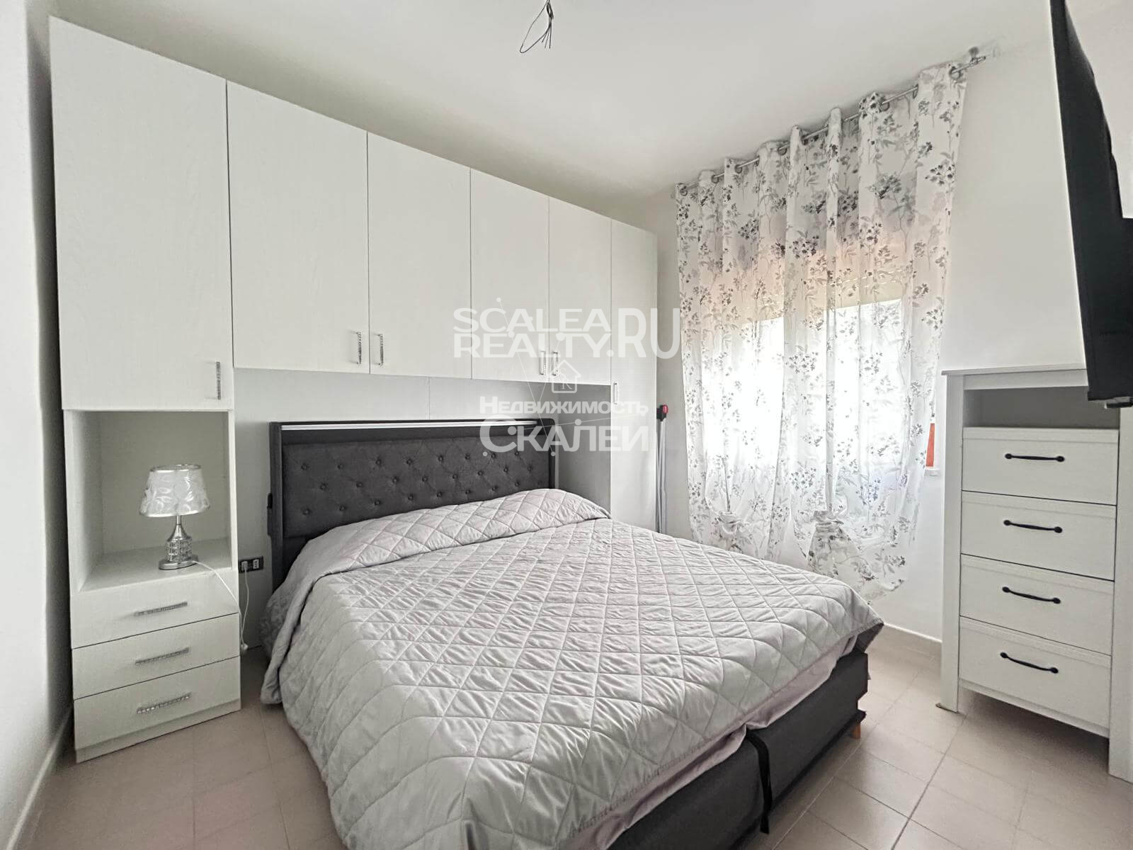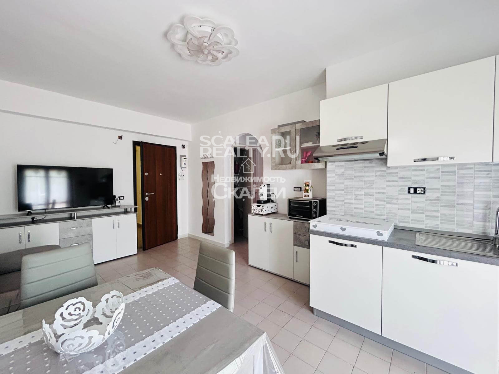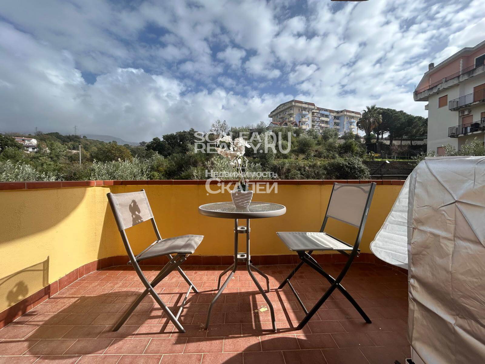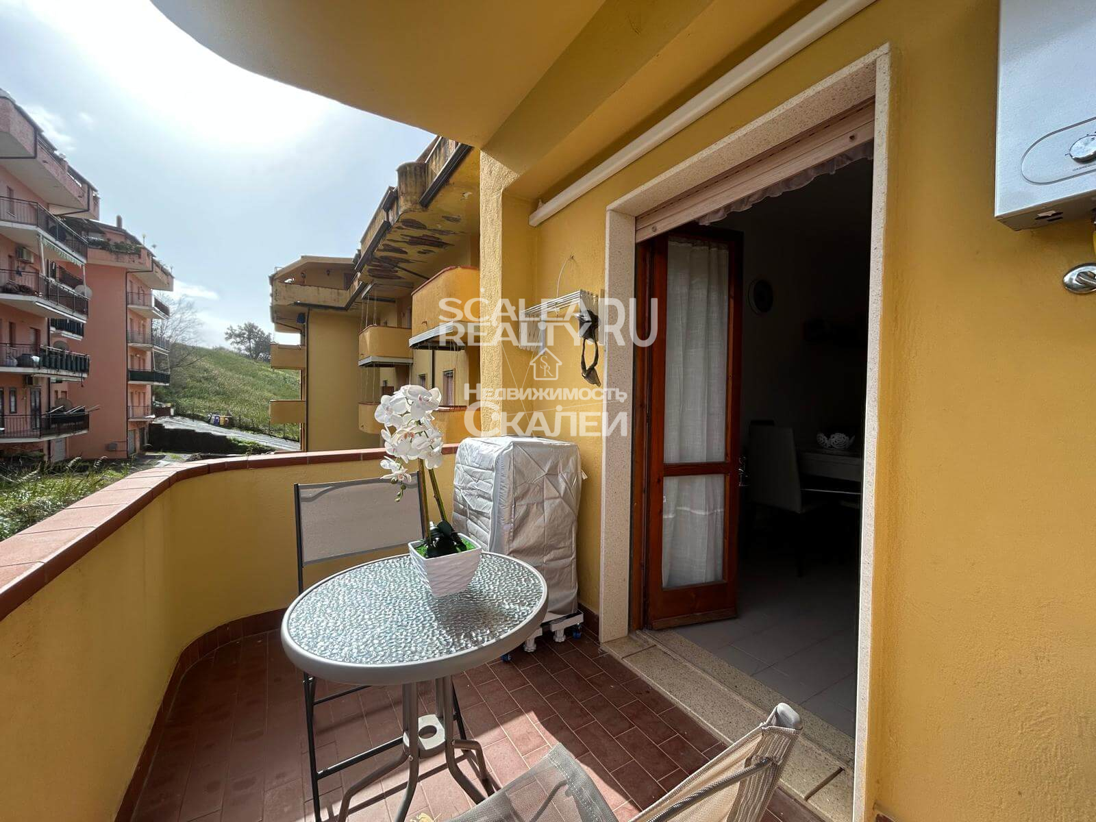 Квартира в Скалеа, по адресу Via Tommaso Campanella 299, трехкомнатная, площадью около 45 кв. м, на 3 этаже, полностью меблирована и частично отремонтирована. Включаетв себя: гостиную с кухней, прихожую, шкаф, две спальни и ванную комнату с душем и окном. Терраса с видом на горы оборудована стиральной машиной, столом и стульями, а также газовым водонагревателем и плитой. Два кондиционера. Новая электропроводка, новая ванная комната, раздвижные двери и бронированная дверь. Окна выходят на две стороны. Общий двор с парковкой. 1,8 км от пляжа, 1,4 км от пешеходной зоны и 1,4 км от железнодорожного вокзала.