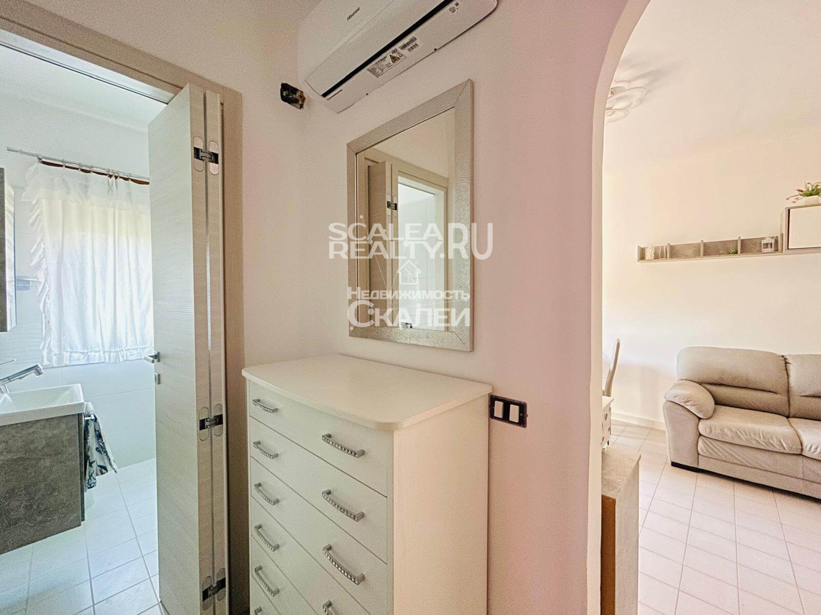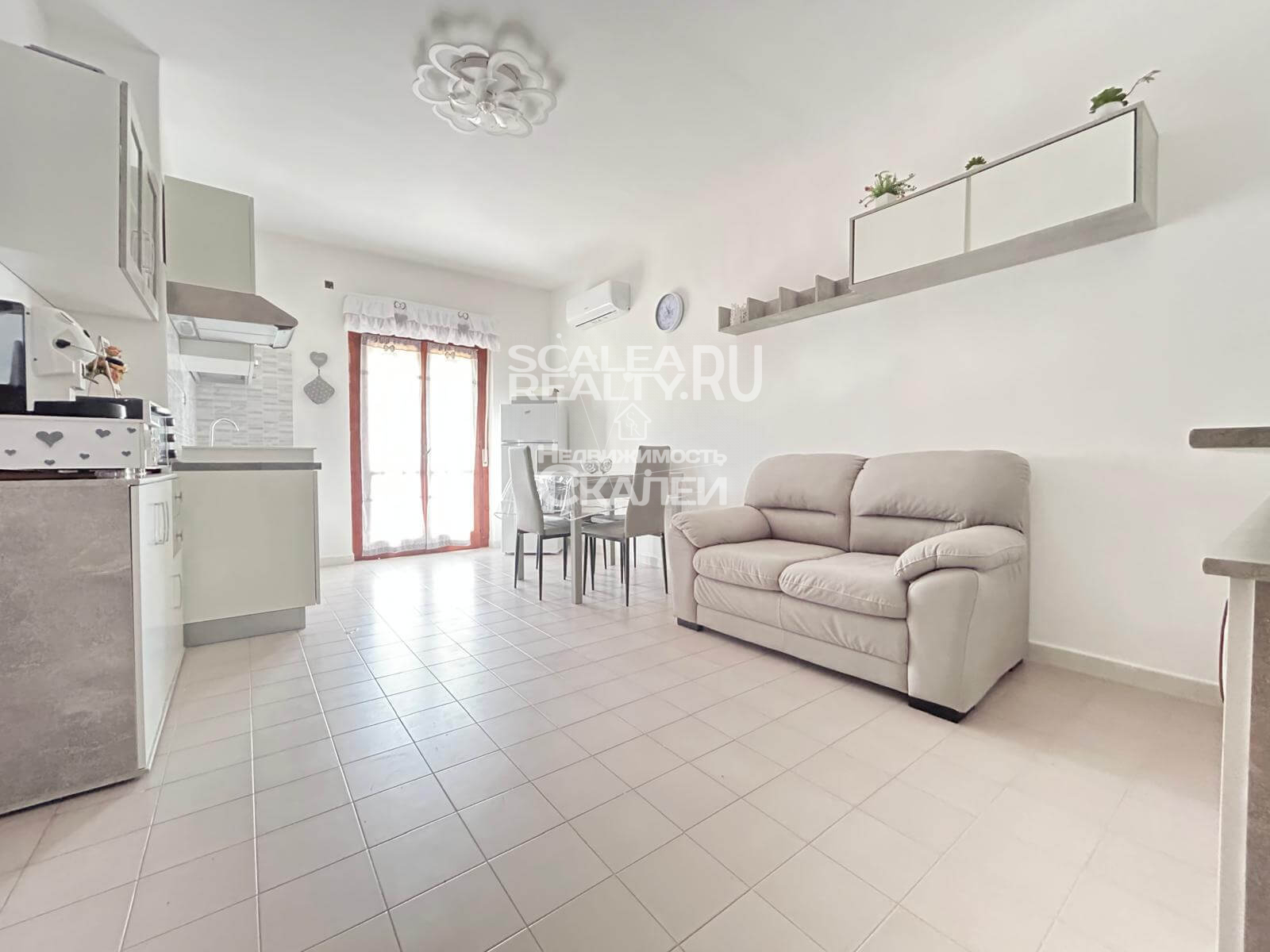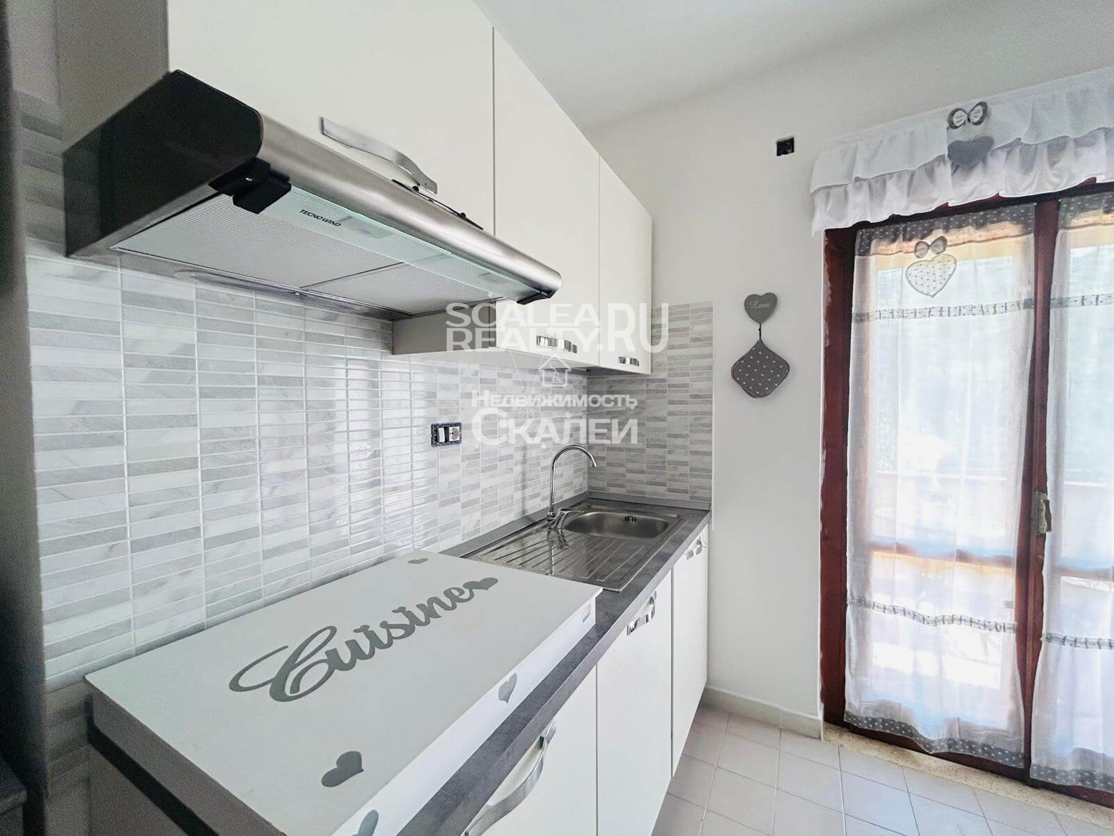 Квартира в Скалеа, по адресу Via Tommaso Campanella 299, трехкомнатная, площадью около 45 кв. м, на 3 этаже, полностью меблирована и частично отремонтирована. Включаетв себя: гостиную с кухней, прихожую, шкаф, две спальни и ванную комнату с душем и окном. Терраса с видом на горы оборудована стиральной машиной, столом и стульями, а также газовым водонагревателем и плитой. Два кондиционера. Новая электропроводка, новая ванная комната, раздвижные двери и бронированная дверь. Окна выходят на две стороны. Общий двор с парковкой. 1,8 км от пляжа, 1,4 км от пешеходной зоны и 1,4 км от железнодорожного вокзала.