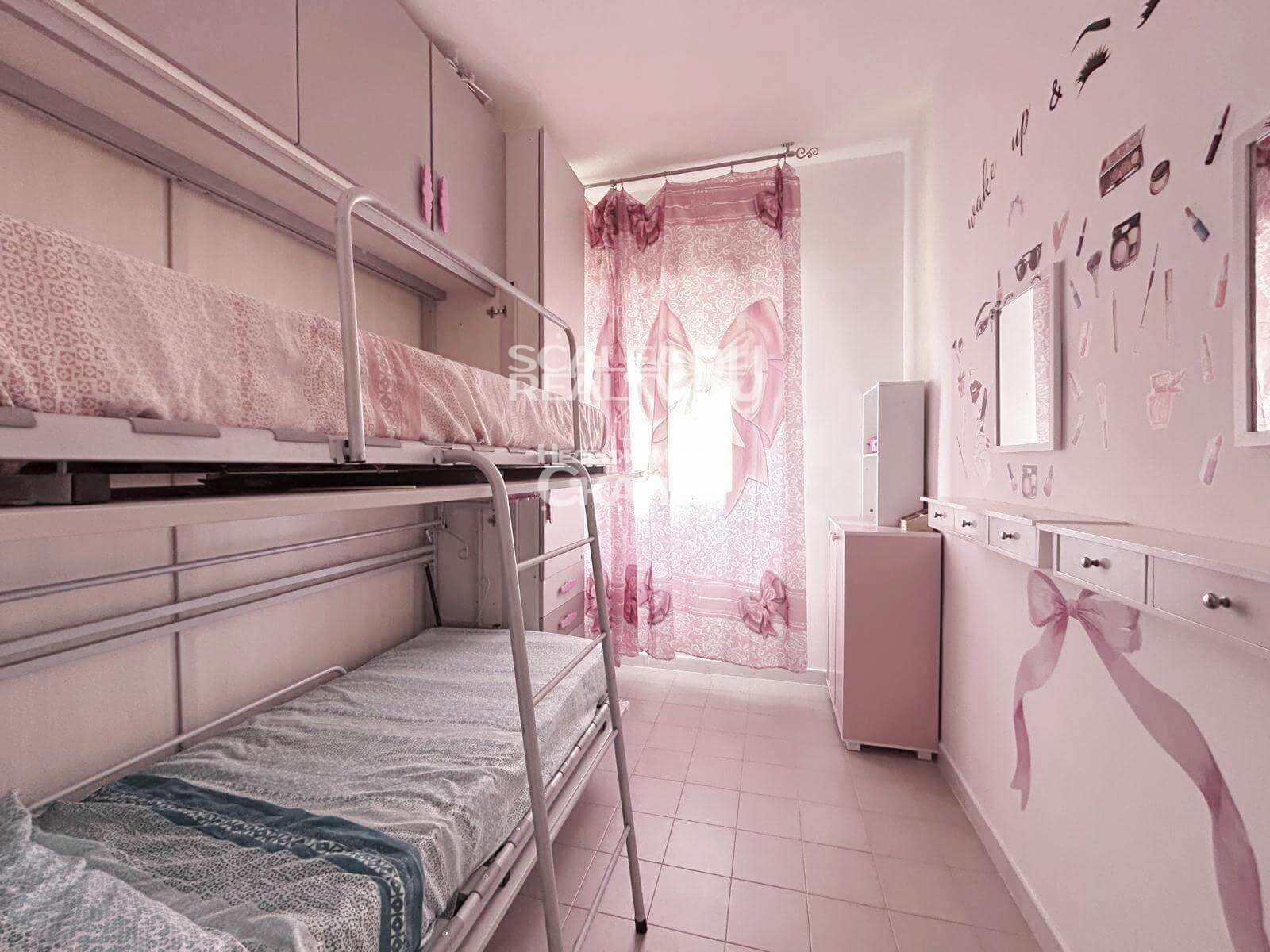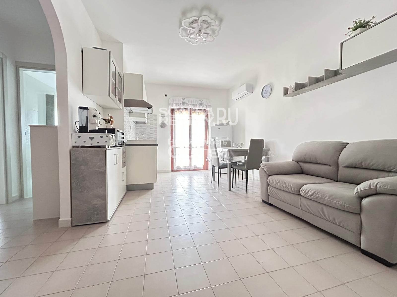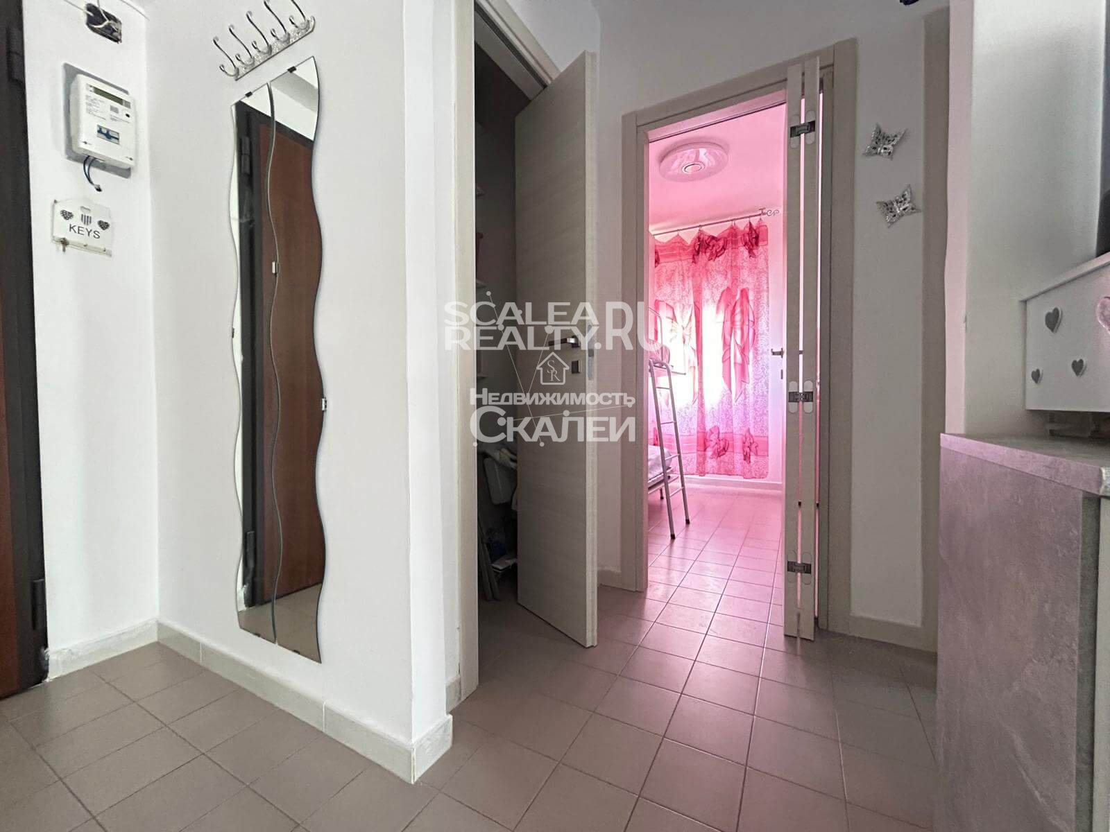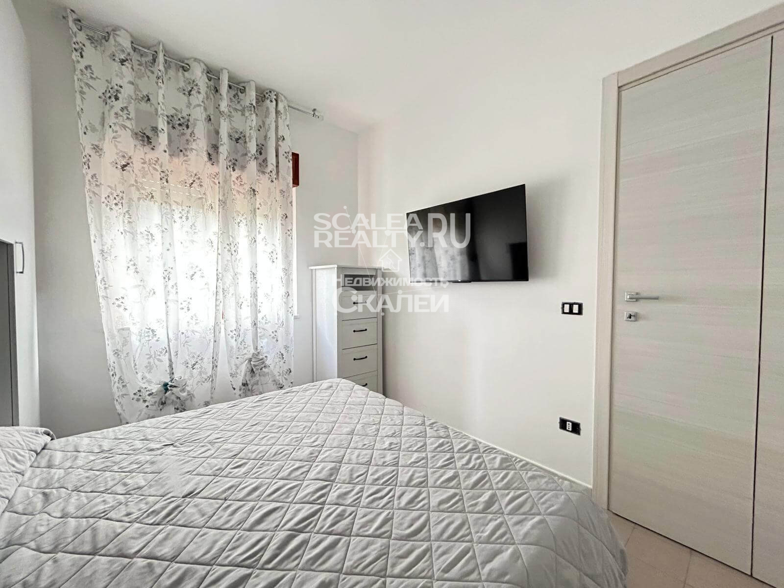 Квартира в Скалеа, по адресу Via Tommaso Campanella 299, трехкомнатная, площадью около 45 кв. м, на 3 этаже, полностью меблирована и частично отремонтирована. Включаетв себя: гостиную с кухней, прихожую, шкаф, две спальни и ванную комнату с душем и окном. Терраса с видом на горы оборудована стиральной машиной, столом и стульями, а также газовым водонагревателем и плитой. Два кондиционера. Новая электропроводка, новая ванная комната, раздвижные двери и бронированная дверь. Окна выходят на две стороны. Общий двор с парковкой. 1,8 км от пляжа, 1,4 км от пешеходной зоны и 1,4 км от железнодорожного вокзала.