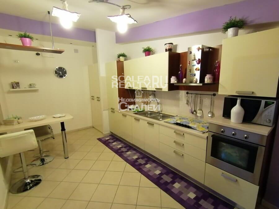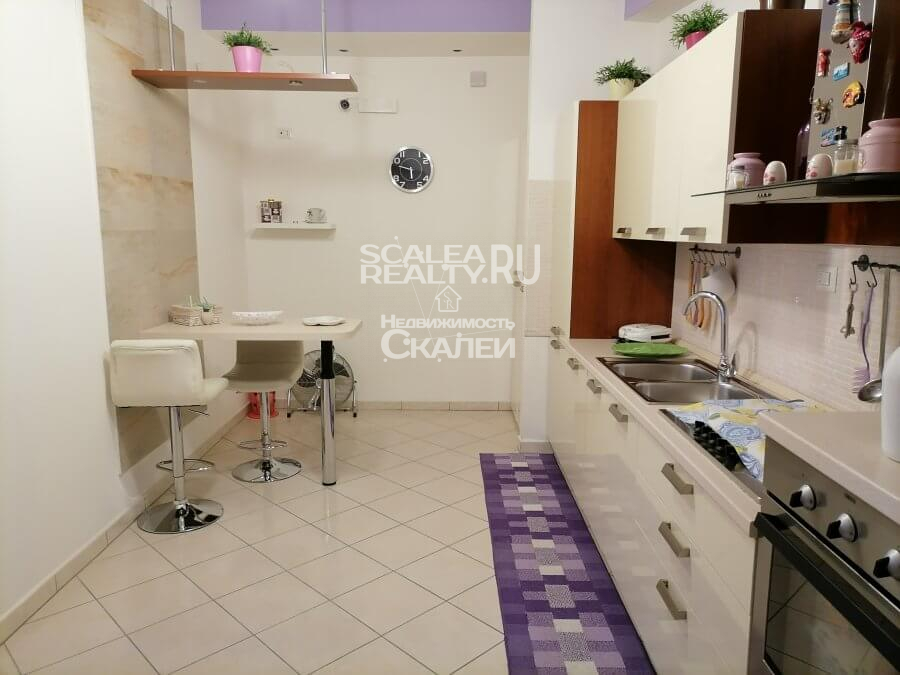 Квартира- конфетка. Не нужно смотреть Турцию. У нас в Скалее есть варианты с капитальным ремонтом. А вот в Турции нет такого шикарного моря. В доме с лифтом на пятом этаже предлагаем апартамент жилой площади 70 кв. метров и террасой 10 кв.метров. Отдельная кухня с барной стойкой, гостиная метров 25 кв.метров. Просторная спальня с выходом на террасу и детская. Яркие, живые цвета вам поднимут настроение, а полный комфорт. Вас заставит почувствовать как у себя дома, не забывая при этом, что вы находитесь в нашей солнечной, доброжелательной Скалее. Дистанция до пляжа не 10 км, а всего лишь 800 метров. Что возможно всегда легко пройти пешком. Расстояние как до метро в Москве. Вы находитесь в Европе и в Калабрии. После покупки квртиры у нас Вы будете всем рассказывать, что такое Скалея и что можно купить дешево шикарные варианты как этот.