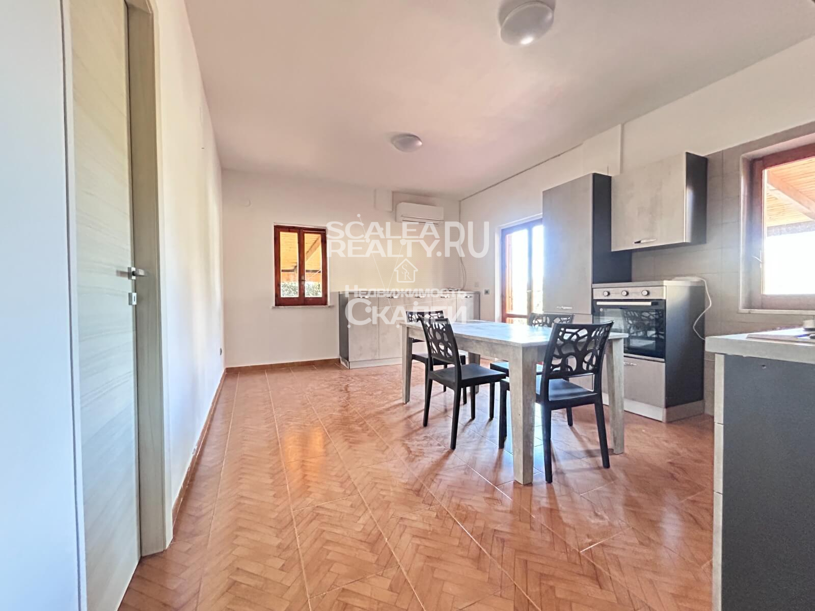 Скалея, улица Сандро Пертини, квартира на первом этаже площадью 86 кв. м с отдельным входом. Квартира включает в себя: отдельный угловой дворик площадью 80 кв. м с душем и раковиной на открытом воздухе, а также крытую парковку; гостиную с мини-кухней, три спальни и две ванные комнаты. Система горячего водоснабжения (сжиженный газ). Новая электропроводка. Кондиционер. Закрепленное парковочное место. Примерно в 2 км от моря.