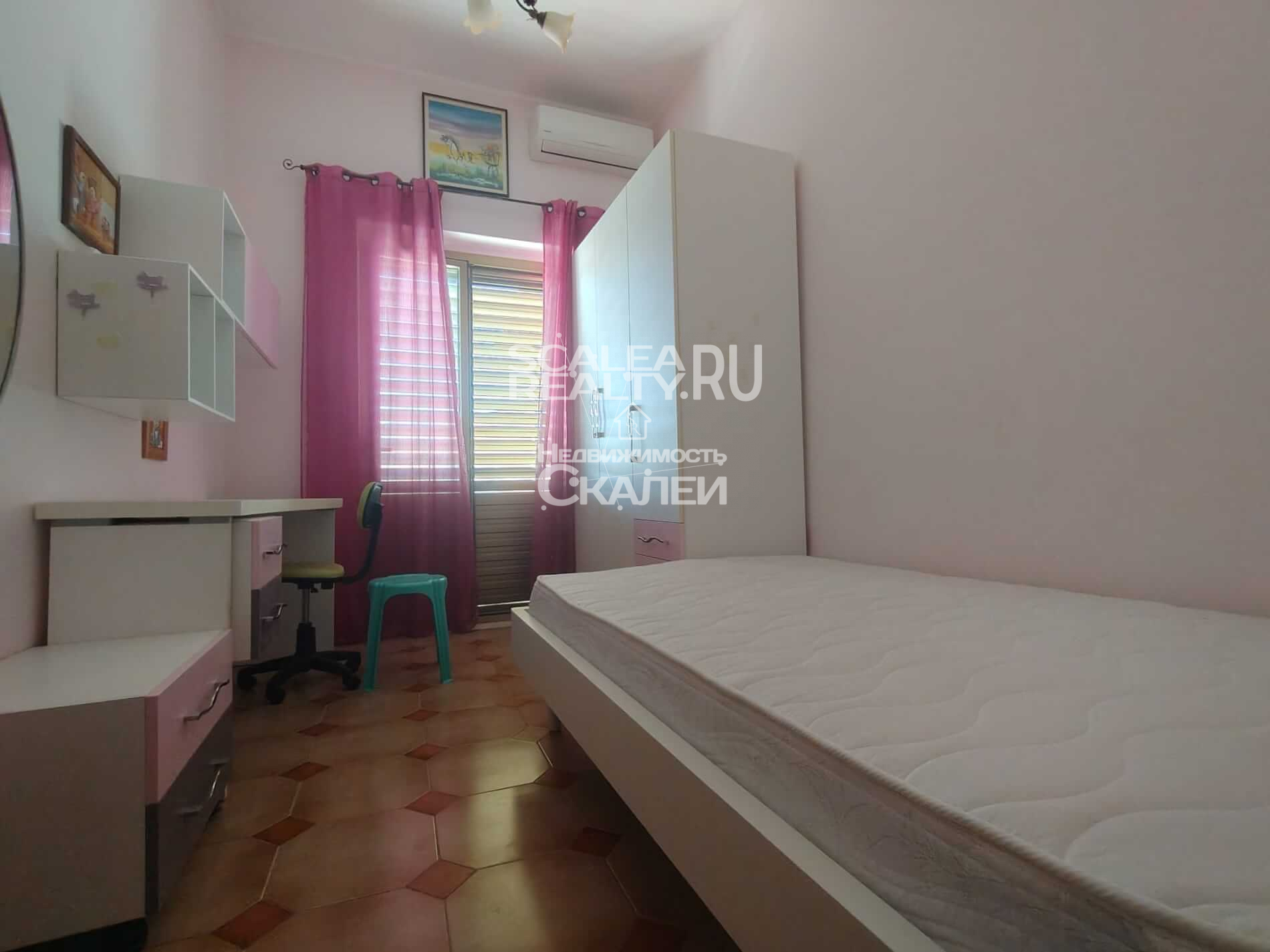 Продается шикарная квартира в самом популярном жилом комплексе города Скалеи. Третья береговая улица via Lauro. Море находится в 400 метрах. Вышли из дома и по прямой 400 метров находится море. Фасад дома был сделан недавно. Живут только резиденты города Скалеи. Чистый подъезд, отличные соседи. Есть лифт. Квартира находится на 5 этаже. Имеет Есть автономное отопление, новая дорогая мебель, стеклопакеты. Новый ремонт.