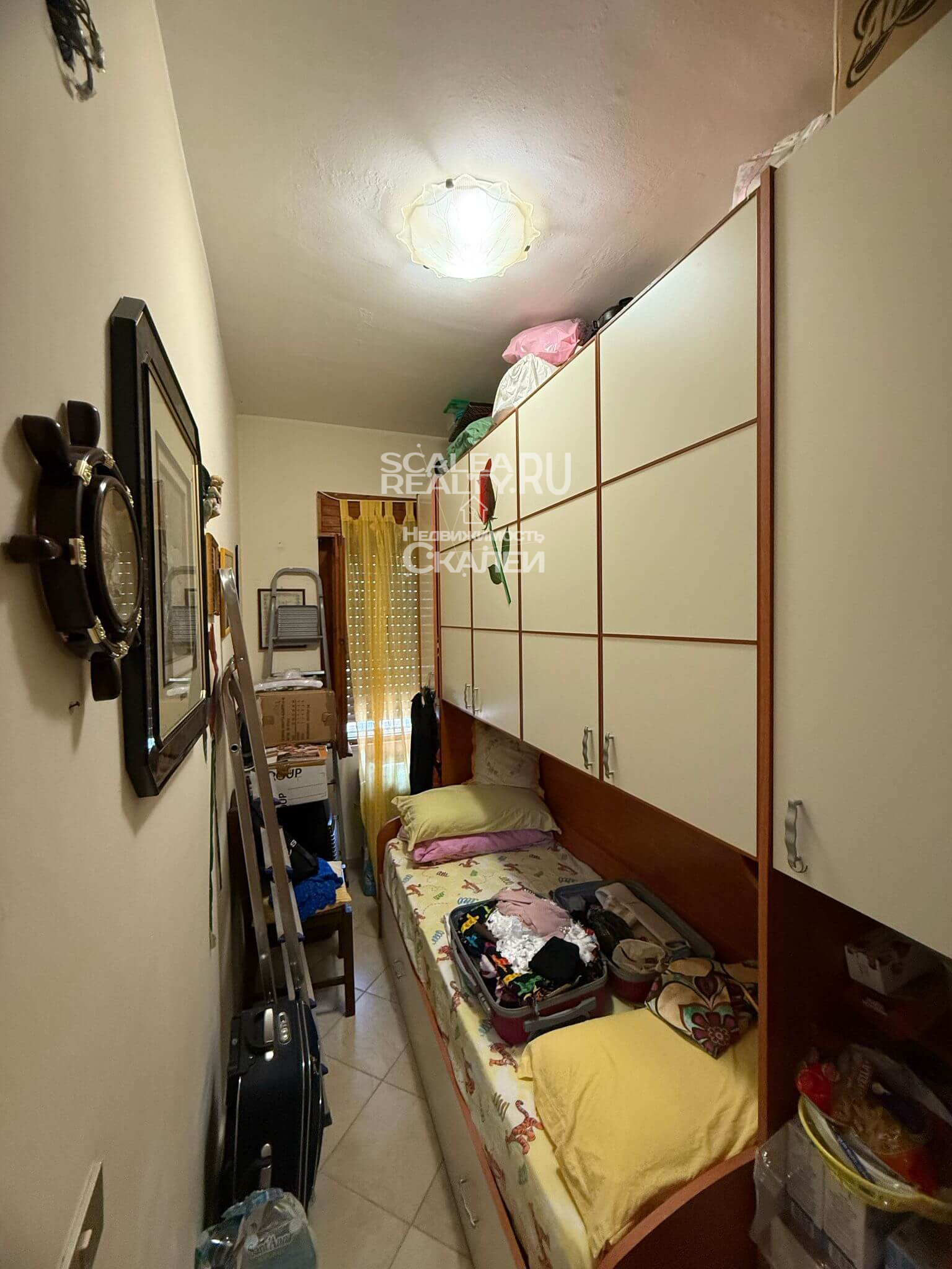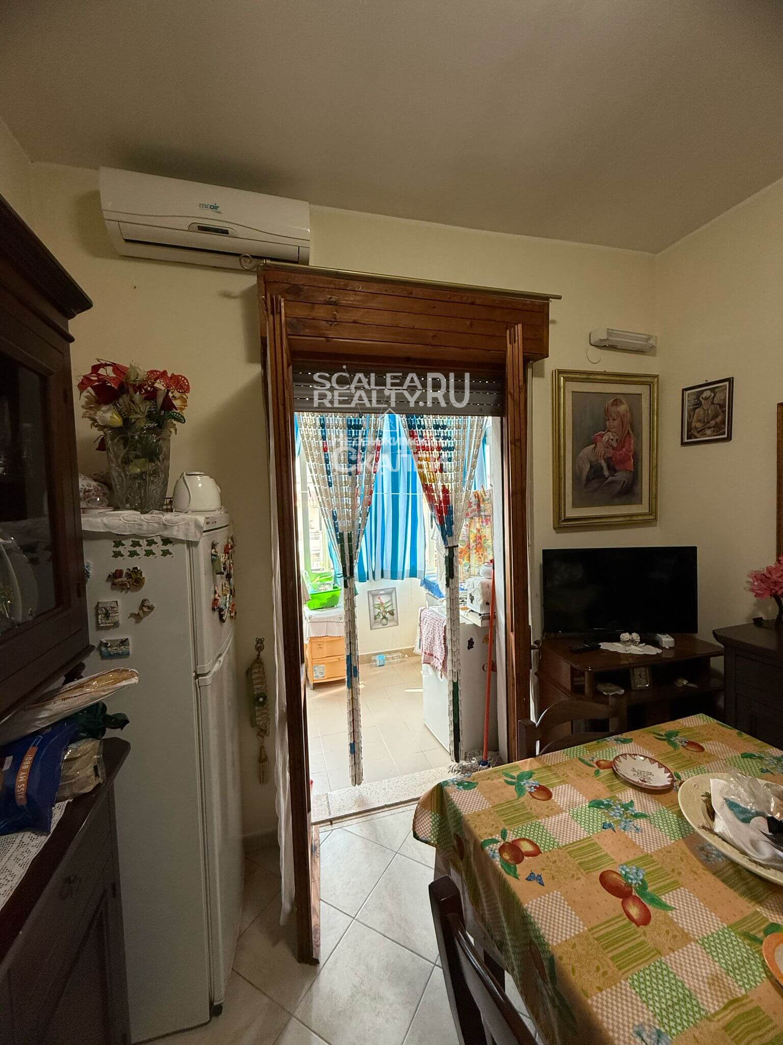 Предлагаем Вам ознакомиться с нашим новым предложением на рынке недвижимости побережья Тирренского моря в городе Скалея. Замечательная, недорогая трехкомнатная квартира с капитальным ремонтом. Пятиэтажный дом находится в хорошем районе с развитой инфраструктурой всего навсего в 600 метрах от городского пляжа. Есть свой двор, закрытая территория. Дом после капитального ремонта. Квартира на 3 этаже, в доме без лифта. Площадь квартиры составляет около 45 кв.метров + 10 кв.метров балконы. Один из которых застеклен и вынесена кухня. Планировка следующего типа: есть прихожая при входе, просторная гостиная, санузел с окном, днтская, большая спальня. Сделан капитальный ремонт. Квартира просторная и очень светлая. Развернута на юг. Рядом находится "Конад". До моря пешком 15 минут.
