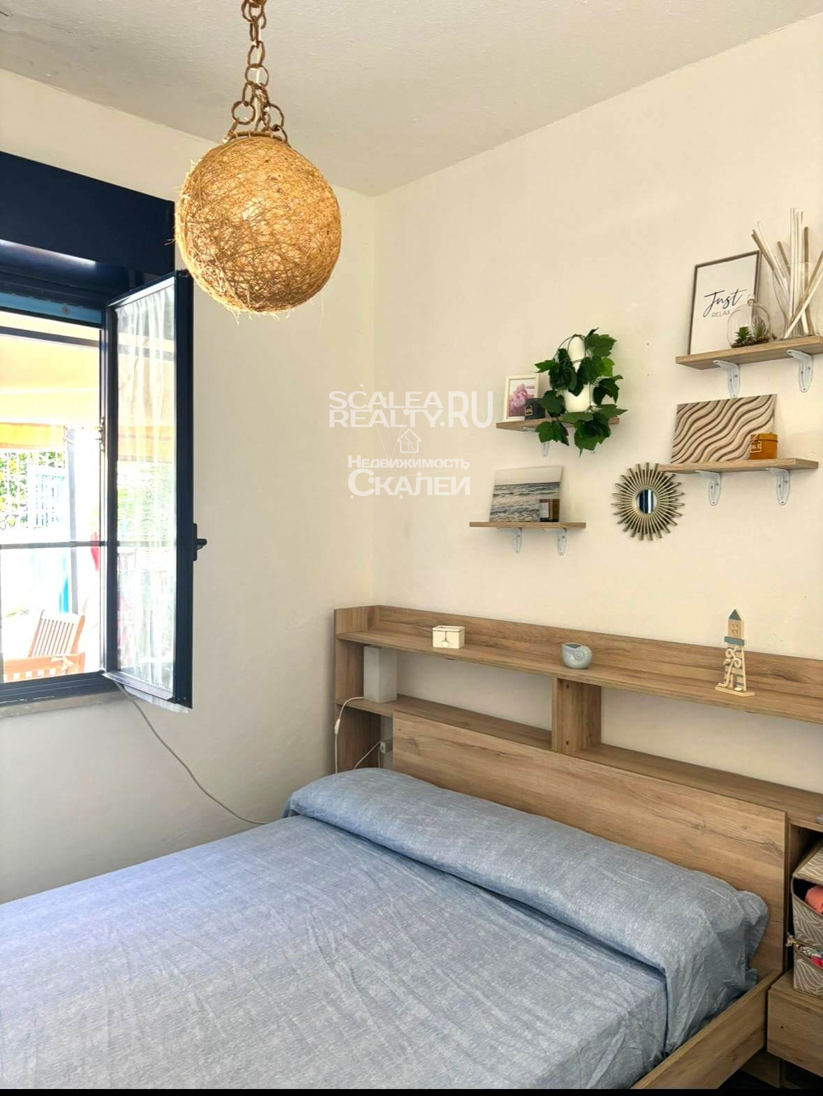 Недвижимость площадью около 35 м2 представляет собой отремонтированную двухкомнатную квартиру, состоящую из: гостиной с кухней, спальни, ванной комнаты, открытого пространства с прилегающей кладовой. Недвижимость в отличном состоянии, находится в 1,5 км от моря.