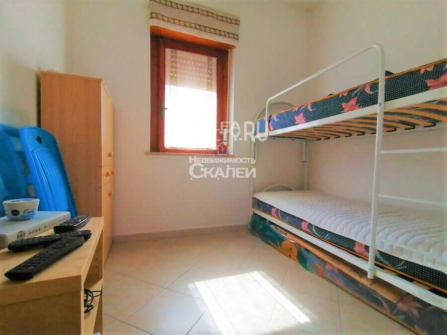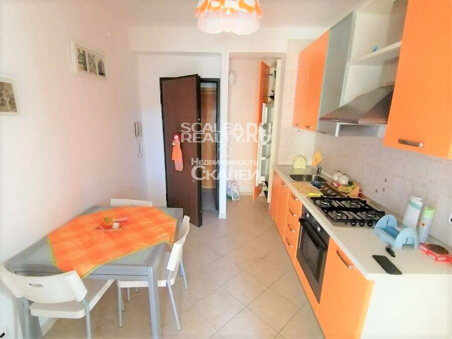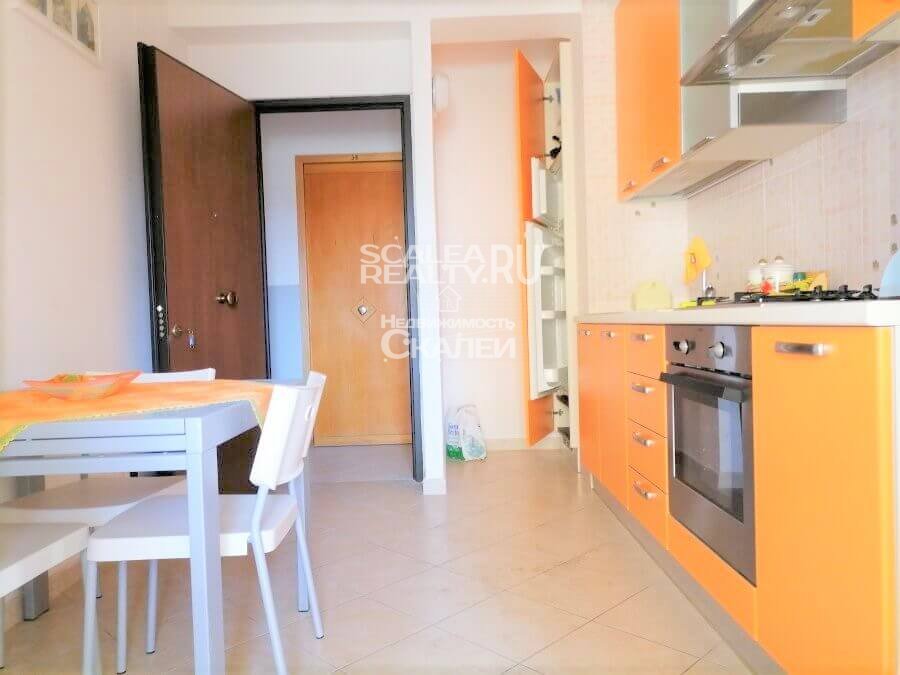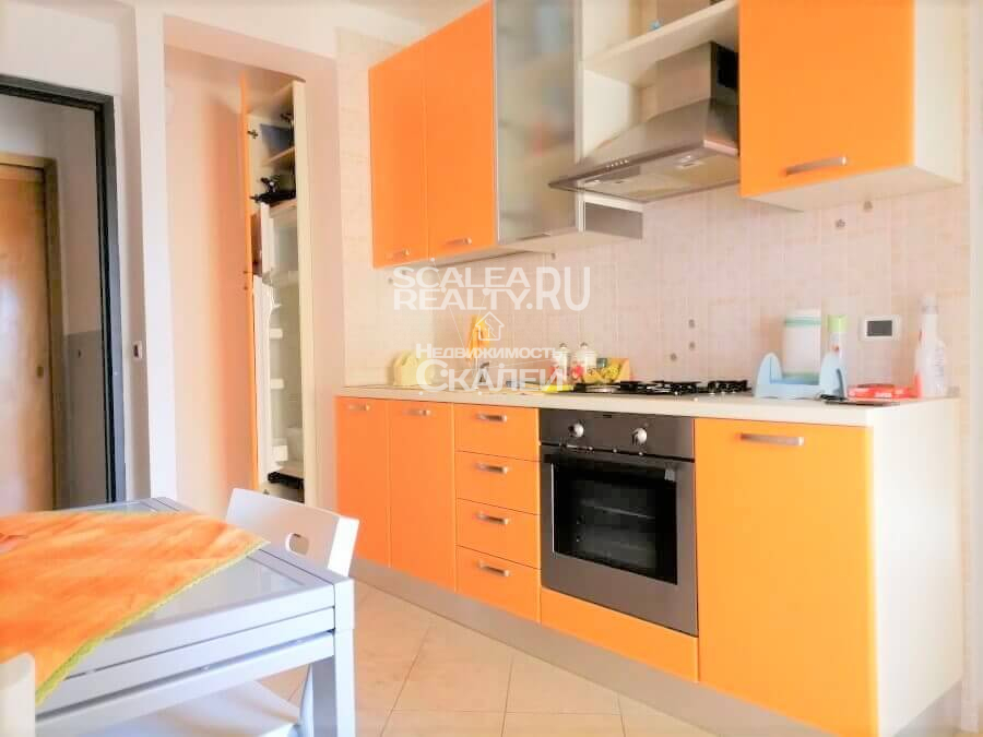 Предлагаем к продаже квартиру, расположенную по улице Pitagora в жилом закрытом комплексе «Мулино», с собственной ухоженной территорией и местами для парковки.В шаговой доступности не только жд вокзал, а также магазин "Конад"- большой продовольственный магазин. Квартира расположена на четвертом этаже пятиэтажного дома. Планировка квартиры следующая: просторная гостиная с кухней и выходом на террассу; спальня; детская с двухярусной кроватью; ванная комната с душевой и окном. Квартира после капитального ремонта, новая мебель. Ждет своего хозяина с личными вещами. Идеально для сдачи,тк все сделано. И таких квартир очень мало в продаже на рынке Скалеи. Дистанция до моря около 800 метров.