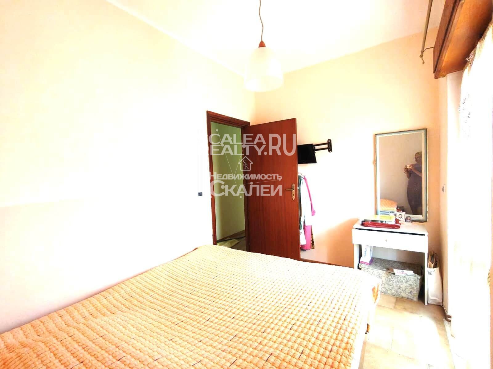 Предлагаем квартиру на море в Италии. Самый популярный курортный город Скалея. Здесь недвижимость доступна каждому. На 4 этаже в доме с лифтом предлагаем апартамент с двумя просторными спальнями. Жилой дом имеет центральное расположение. Это 3 береговая линия, пользующаяся спросом как при аренде, так и при покупке. Всего лишь 300 метров до "Интердеспара", дистанция до моря и центра около 500 метров. В доме проживают итальянцы круглый год. Следующая планировка: есть коридор при входе, гостиная с кухней и выходом на террассу почти 20 кв.метров, длинный коридор, две спальни, санузел с окном. Просторная террасса с свободным обзором. Жилая площадь квартиры около 50 кв.метров и общая 70 кв.метров.