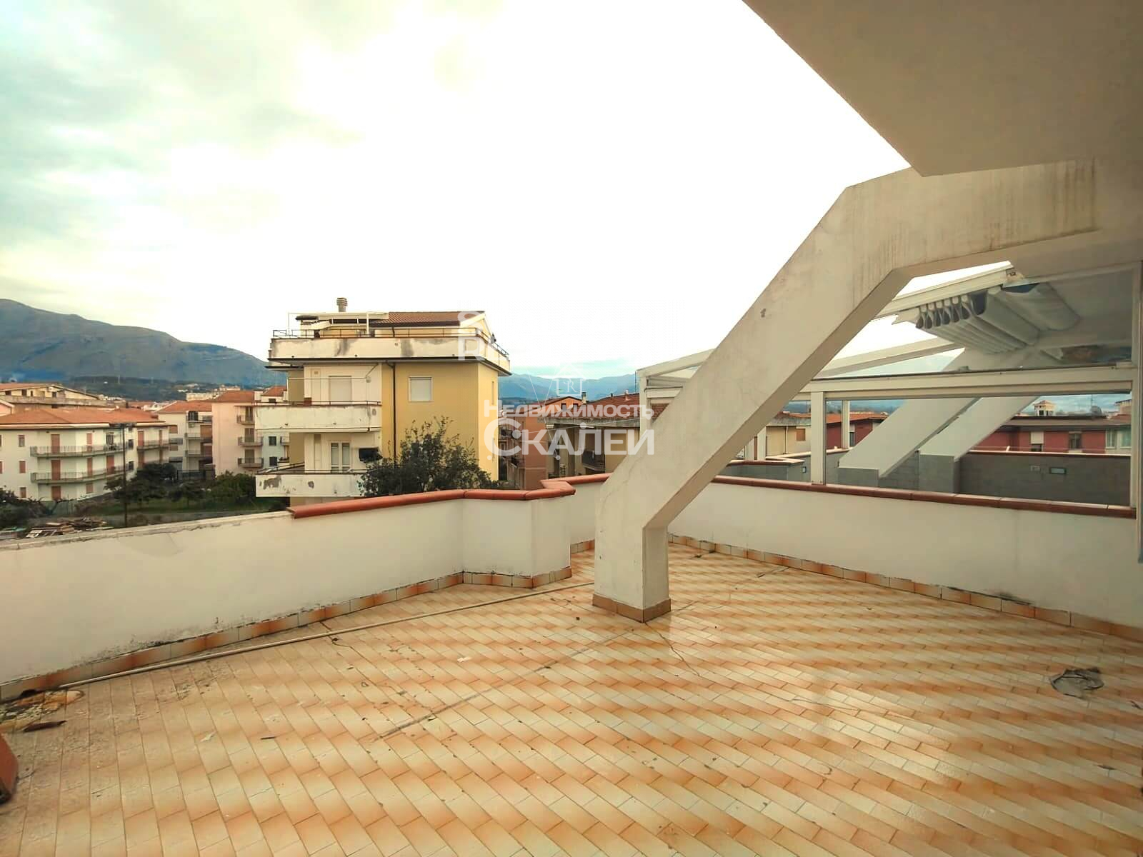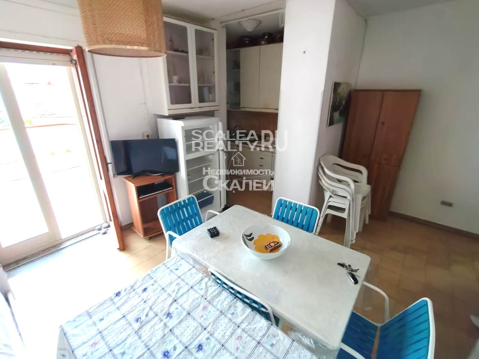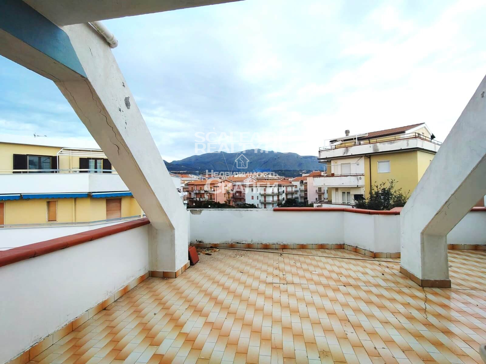 Выгодное предложение в Скалее - трехкомнатная квартира в первой береговой линии города Скалеи, Corso Mediterraneo. Пляж находится через дорогу. Апартамент находится в хорошем состоянии. Эксклюзивный вариант в доме, который был недавно отреставрирован. Находится на 4 этаже. Есть лифт. Апартамент выходит с террассой на восток. Жилая площадь около 50 кв. метров, включает: просторную гостиную, отдельную кухню, детская и спальня. Из гостиной выход на большую террассу, откуда открывается вид на горы. Из большой спальни есть выход на балкон, там вид на море.