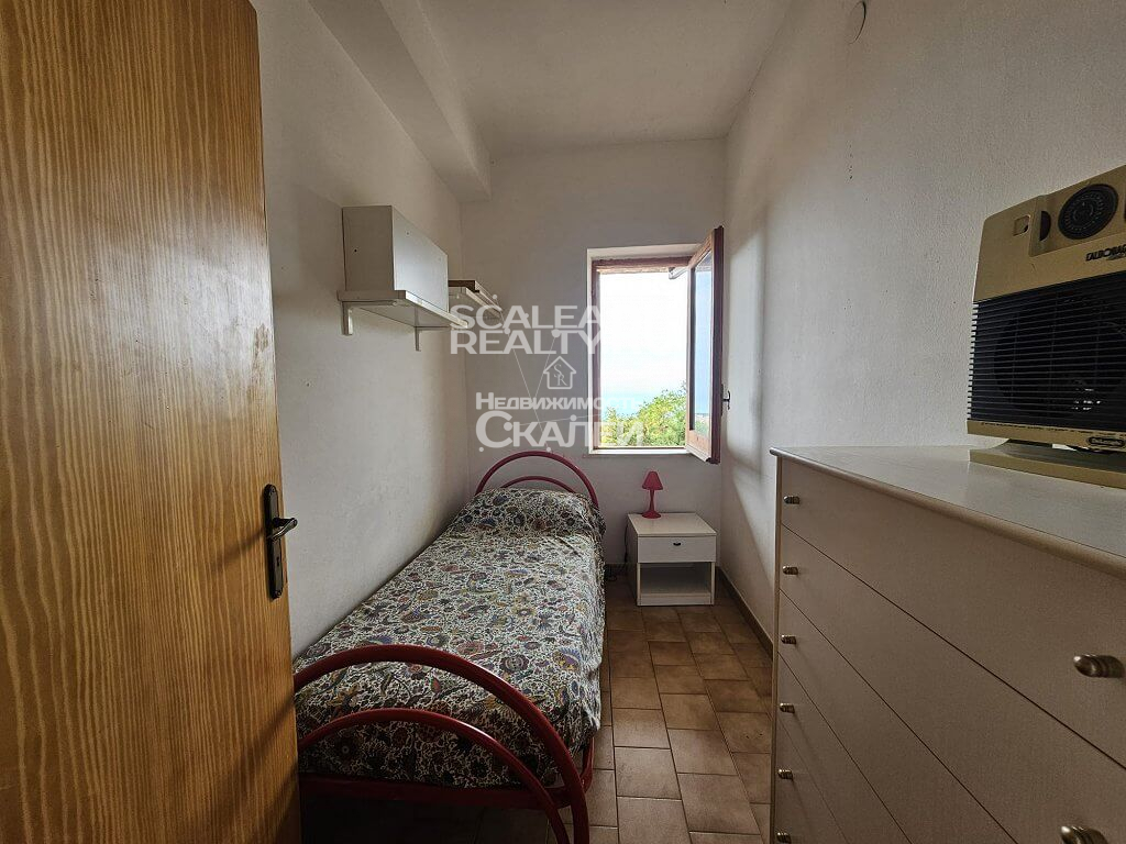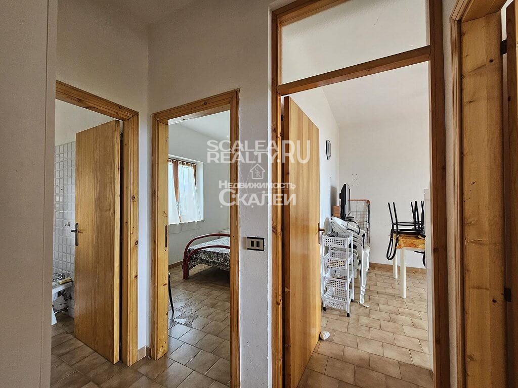 В панорамном месте на холме Монтичелло города Скалея с видом на море и горы предлагаем великолепную трехкомнатную квартиру жилой площадью 45 кв.метров с балконом 6 кв.метров. Откуда открывается панорамный вид на море и город Скалеи. Апартамент расположен на втором этаже и имеют собственный мощеный садик площадью 10 квадратных метров. Террасса соединяет кухню с гостиной и дают возможность наслаждаться захватывающими видами на море и закатами солнца. До моря около 10 минут на машине.