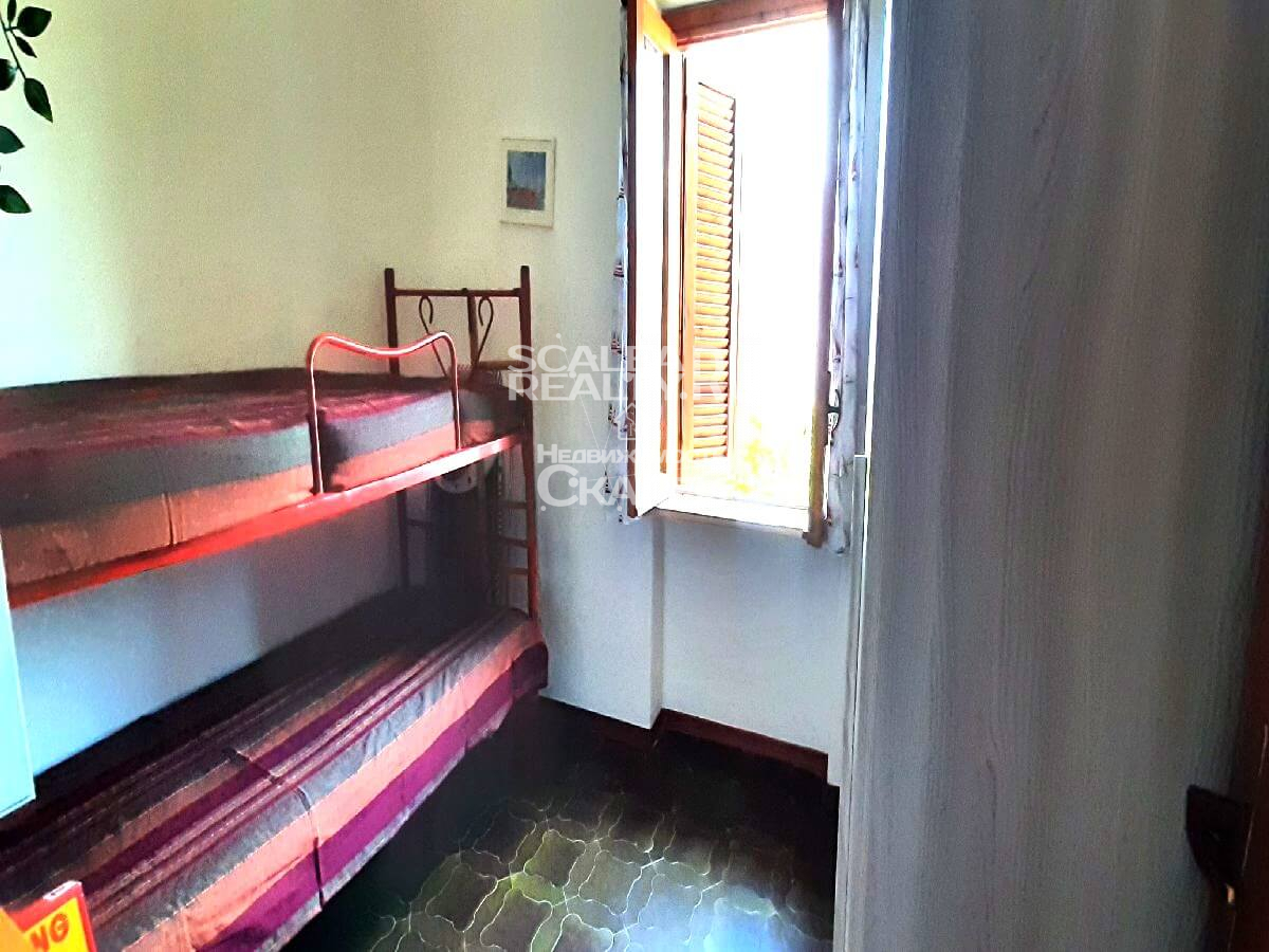 В известном городе Скалея в закрытом жилом комплексе "Scalea - 2000" предлагаем к продаже виллету. Это вторая улица от пляжа, Fiume Lao. Имеет отдельный вход и собственный земельный участом около 20 кв.метров. На второй этаж ведет лестница, есть террасса при входе, где модно проводить летние трапезы. Жилая площадь составляет 45 кв.метров. Следующая планировка: гостиная с кухней, две спальни и санузел. Новая мебель. Дистанция до моря около 5 минут ходьбы, до супермарке "Деспар" в 100м. Здесь вы оцените по достоинству все плюсы комфортного отдыха на морском берегу Тирренского моря. В квартире есть все необходимое для проживания, полностью меблирована. Всего шесть спальных места.