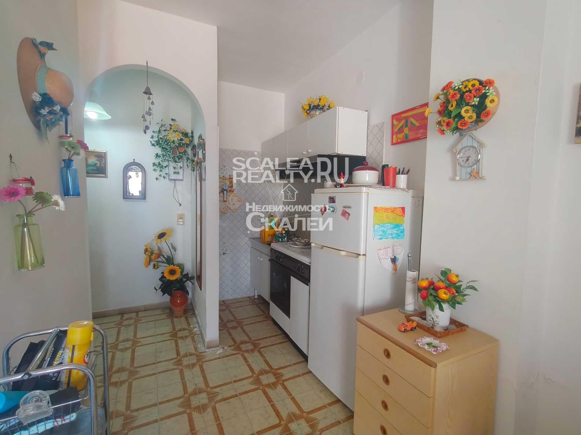 Жилая площадь квартиры около 50 кв.метров + 15 кв.метров террасса с панорамным видом на море. Прямой вид на море 360 градусов. На площадке по 4квартиры. Следующая планировка: есть прихожая, гостиная с кухней выходом на террассу, первая спальня имеет выход тоже на балкон, спальня и санузел с окном. По прямой необходимо пройти всего лишь 8 минут до моря и до метного Арбата Скалеи.