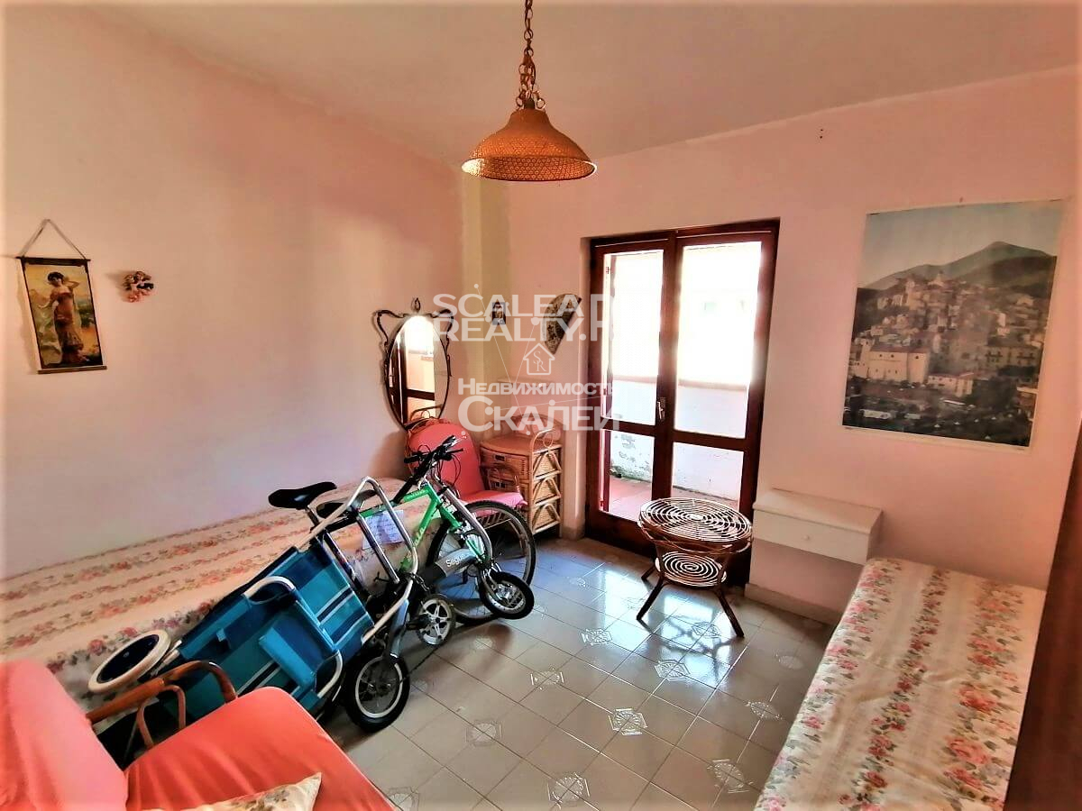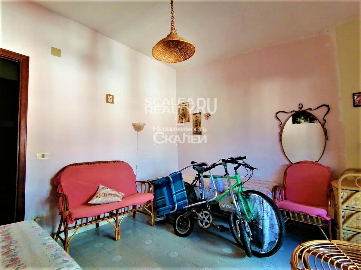 В центре города Скалеи, всего лишь 500 метрах от исторического центра предлагаем вашему вниманию трехкомнатную квартиру в жилом комплексе "Мимоза". Закрытая территория парка имеет хороший двор с автоматическими воротами. Улица 25 Aprile - это центр города, к морю идти 10 минут. В 300 метрах находится продовольственный магазин "Интерспар". Квартира имеет большую площадь 70 кв. метров вместе с балконами. И имеет потрясающий вид на горы. Жилая площадь квартиры около 50 кв.метров. Находится в хорошем кирпичном доме на пятом этаже. Следующая планировка: просторная гостиная с кухней и выходом на террасу, две большие спальни и санузел с окном. Угловая терраса около 20 кв.метров. Парковка авто на территории парка. Важное-центральное расположение, близость к морю, хороший кирпичный дом и закрытая территория. Купите дачу в Скалее за нескромномалые деньги.