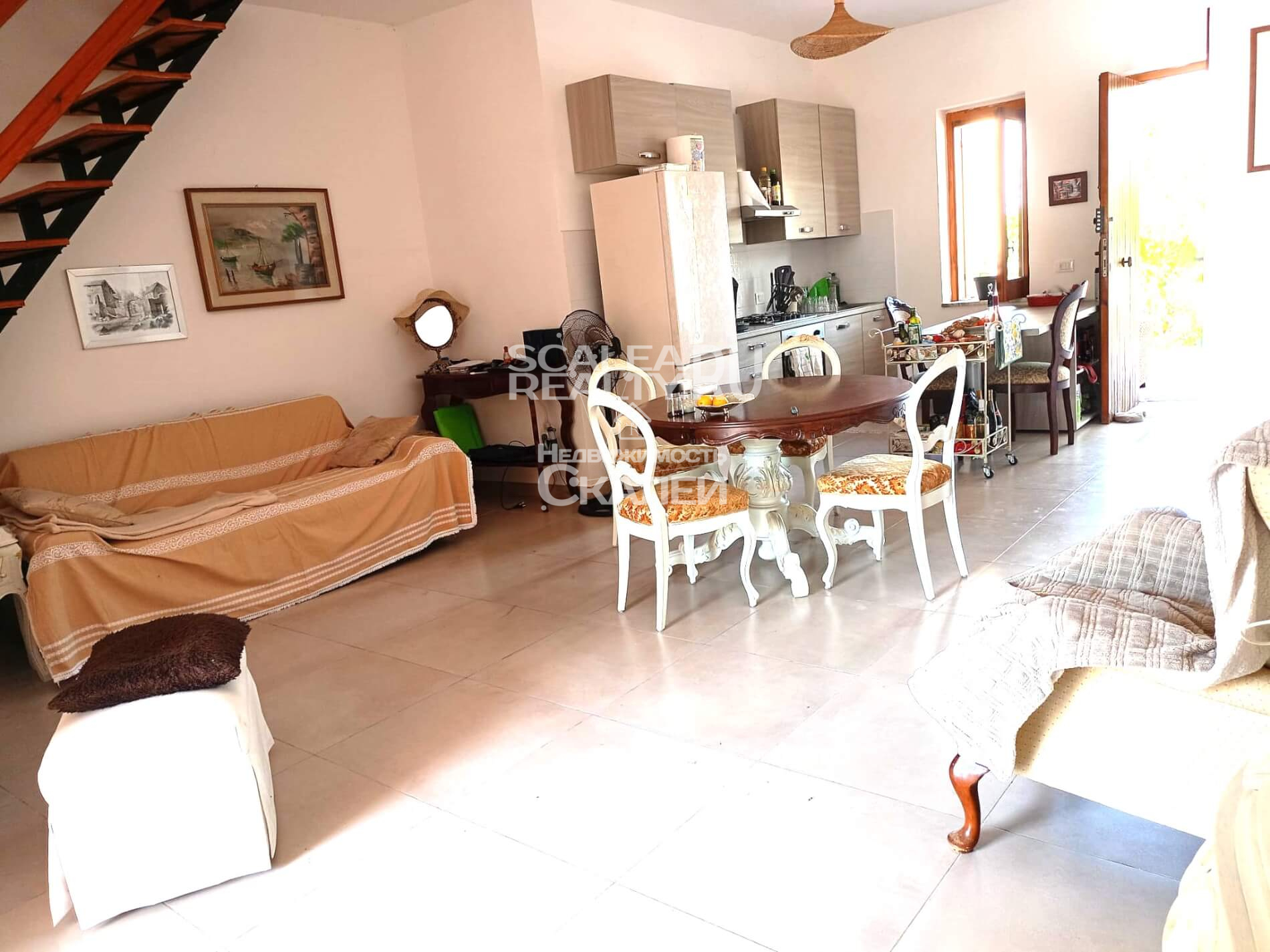 Вашему вниманию предлагаем двухэтажную виллу с земельным участком 200 кв. метров и жилой площади около 100 кв.метров. Эксклюзивное расположение - это преимущество для выбора именно этой недвижимости в Италии. Мало, кто может предложить в Италии такой вид и близость моря за эти деньги. Адрес дома - это улица via Cupido. Дом находится в самом престижном жилом районе «Baia del Carpino», с собственной инфраструктурой и частными пляжами. Своя закрытая территория, круглогодичная охрана. В летний период работает трансфер до центра города и обратно. В инфраструктуру комплекса входит: парковая зона с прогулочными дорожками, смотровые площадки, пиццерия, спортивная и детские площадки, и, конечно же, собственный благоустроенный пляж. Вход на который разрешен только жителям и гостям жилого комплекса. Очень красивая ухоженная территория дома : высажены деревья, кустарники и цветы. Находясь во дворе дома отовсюду Вашему взору открывается невероятный вид на море и на горы. Следующая планировка дома: при входе выложенное плиткой терраса, просторная гостиная, отдельная кухня и санузел. Лестница, ведущая на второй этаж, где расположились 2 спальни и санузел. Панорамный вид на море со всех окон.