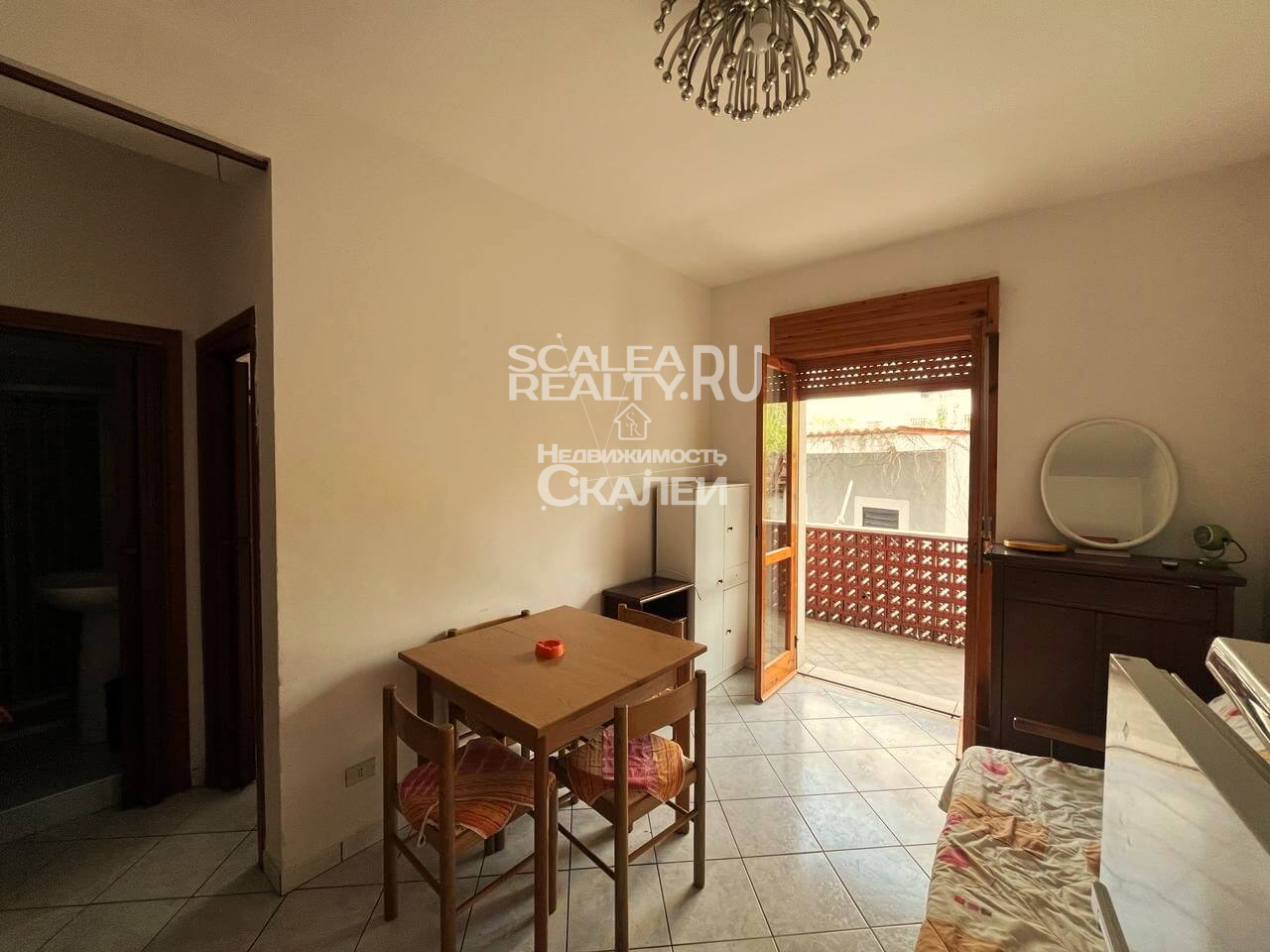 Предлагаем в самом популярном морском городе Италии, Скалея, на улице Т. Кампанелла, квартиру на первом этаже с балконом. Квартира с капитальным ремонтом. Пол и ванная комната отделаны. Третья береговая линия, ухоженный парк Скалея-2000. Огромная закрытая территория, шикарные фасады и чистые подъезды. Дом с лифтом. Квартира для ленивых. Низкий этаж. Всего в 200 метрах продуктовый магазин и в 15 минутах ходьбы пляж. Парковочное место прямо возле дома. Планировка следующая: небольшая гостиная с кухней и выходом на балкон, площадью около 6 кв. м, спальня, новый санузел. Жилая площадь около 30 кв. метров + 6 кв. метров балкон. Заезжай и живи.