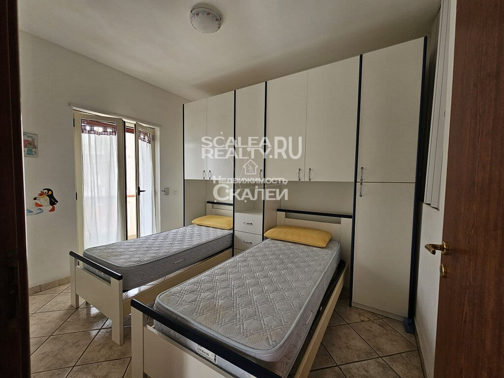 Если Вы ценитель комфорта и спокойного образа жизни, желаете жить и отдыхать райском уголке, с великолепной природой и, буквально, вблизи моря, без шума машин и городской суеты – это предложение идеально для Вас. Скалея, предлагаем вашему вниманию часть дома в жилом комплексе "Poggio Fiorito 2000". Вилла расчитана на четыре семьи. Каждая из которой имеет отдельный вход угловой земельный участол около 80 квадратных метров, почти полностью выложенный плиткой, с душем на открытом воздухе, барбекю и с возможностью въезда на машине во двор.Следующая планировка: при входе располагается гостиная с кухней и санузел. На второй этаж ведет лестница, где есть 2 спальни и второй санузел. Также есть 2 балкона, веранда и солярий. Вилла полностью меблирована. Есть кондиционер. Год постройки: 2000. Годовая плата за обслуживание комплекса : около 200 евро.Дистанция 1 км до пляжа по равнине. На территории жилого комплекса имеется бассейн, ресторан и бар.