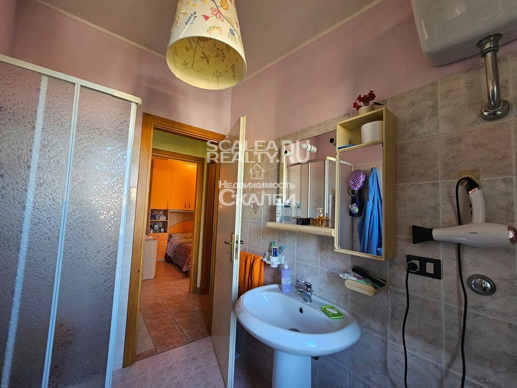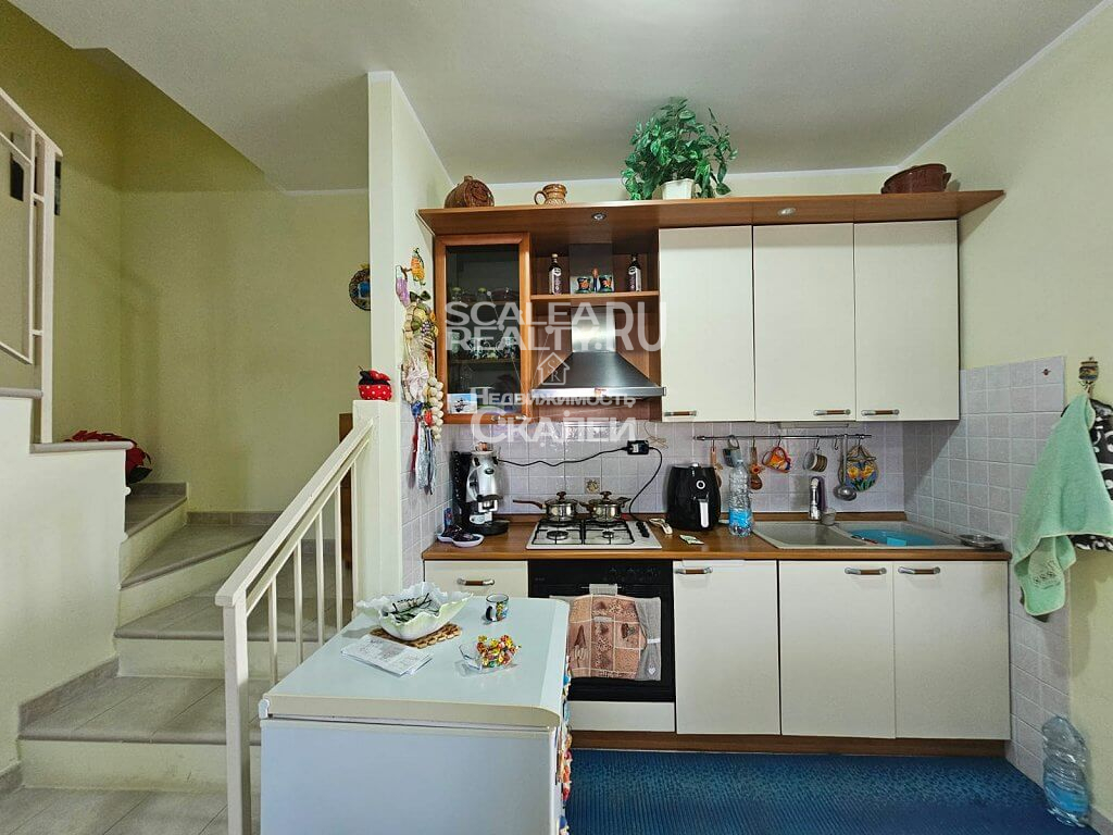 Если Вы ценитель комфорта и спокойного образа жизни, желаете жить и отдыхать райском уголке, с великолепной природой и, буквально, вблизи моря, без шума машин и городской суеты – это предложение идеально для Вас. Скалея, предлагаем вашему вниманию часть дома в жилом комплексе "Parco Roma". Виллы расчитана на четыре семьи. Каждая из которой имеет отдельный вход угловой земельный участол около 40 квадратных метров, почти полностью выложенный плиткой, с душем на открытом воздухе, барбекю и с возможностью въезда на машине во двор.Следующая планировка: при входе располагается гостиная с кухней и санузел. На второй этаж ведет лестница, где есть 2 спальни и второй санузел. Также есть 2 балкона, застекленная веранда. Вилла полностью меблирована. Есть кондиционер. Год постройки: 2000. Годовая плата за обслуживание комплекса : около 200 евро. Дистанция 1,5 км до пляжа. На территории жилого комплекса имеется прекрасный полисадник, свободные стоянки для авто.