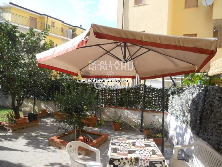Прекрасные квартиры  в парке  "Мулино". Квартиры  расположены в 800 метрах от моря 300 метров от супермаркета и 500 метров от центра города. Каждая квартира имеет: гостиная с кухней, две и одна спальни, санузел. Обе квартиры имеют выход в сад. В саду можно загорать, есть шезлонги. Растут красивые цветы и лимонное дерево с лимонами. Русские программы 15 штук. Высота забора 5 метров. Цена 40 в день. Возможно снять одновременно и вторую квартиру. Общий сад 200 метров.  В итоге:  8 спальных мест ,3 кухни, 2 туалета, 2 телевизора  и 5 комнат. Итого 80 евро в день, как средний отель в Риме из одной комнаты.