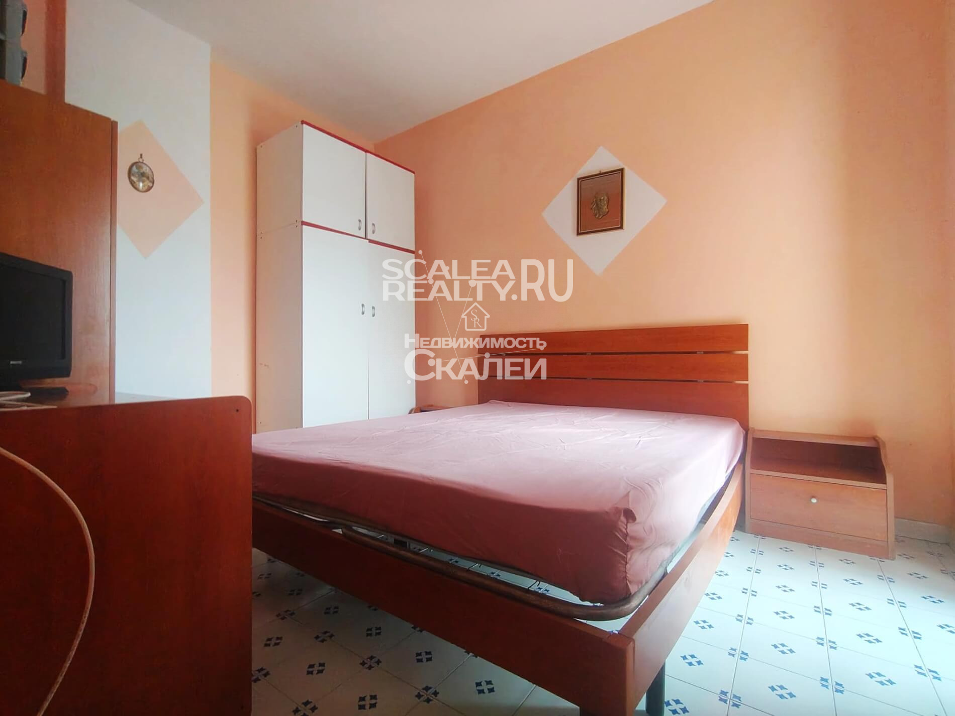В самом известном курорте города Скалеи по ул. Campo Volo, в жилом закрытом комплексе "Pantano" предлагаем к продаже апартамент на 4 этаже. Жилая площадь составляет 45 кв.метров. Большая солнечеая терраса около 40 кв.метров с видом на город и море. Квартира имеет следующую планировку: просторная гостиная с кухней и выходом на первый балкон, коридор, большая спальня, детская и санузел.