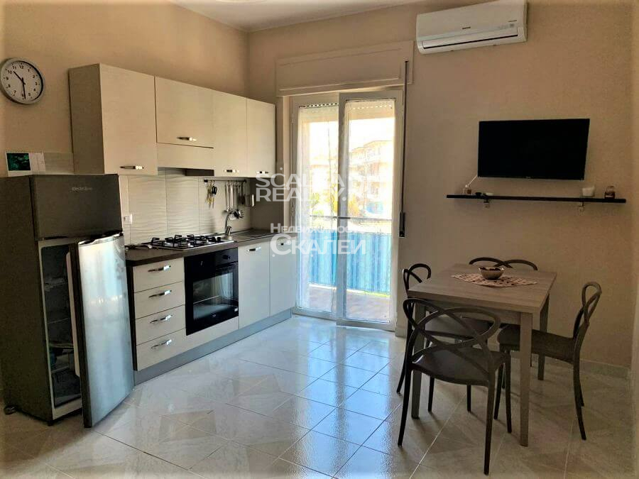 В городе Скалея, в ухоженном жилом комплексе "Silvestri", по второй улице от пляжа via Fiume Lao, сдается апартамент. Сделан капитальный ремонт, новая мебель, кондиционер и все необходимой для летнего отдыха. Следующая планировка: отдельный вход, два шикарных балкона с маркизами, гостиная с кухней, санузел и спальня. Размещение 4 счеловек. Дистанция до пляжа 200 метров, рядом нахолится продовольственный магазин "Деспар".