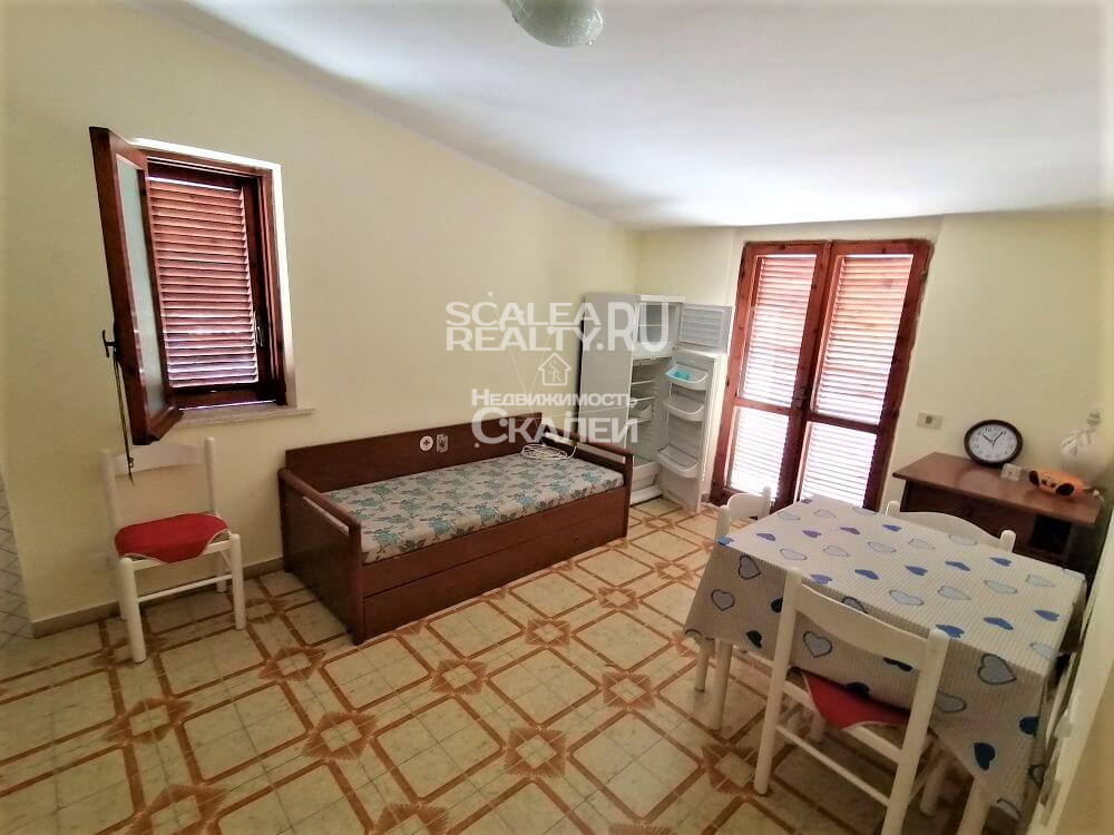 Сдается в аренду в Скалее уютная квартира в центре города via Pitagora на пятом этаже пятиэтажного дома. Общая площадь 50 кв. метров. Две спальни, гостиная, совмещенная с кухней, санузел, терраса с видом на город. Очень удобное местоположение. Расстояние до моря 800 метров. Рядом находятся супермаркеты, ресторанчики, бутики, пицерии, кафе и бары. До ж\д станции подать рукой. В супружеской спальни большая двухспальная кровать, шкаф для одежды. В детской-двухъярусная кровать. В гостиной диван. Всего 6 спальных мест.