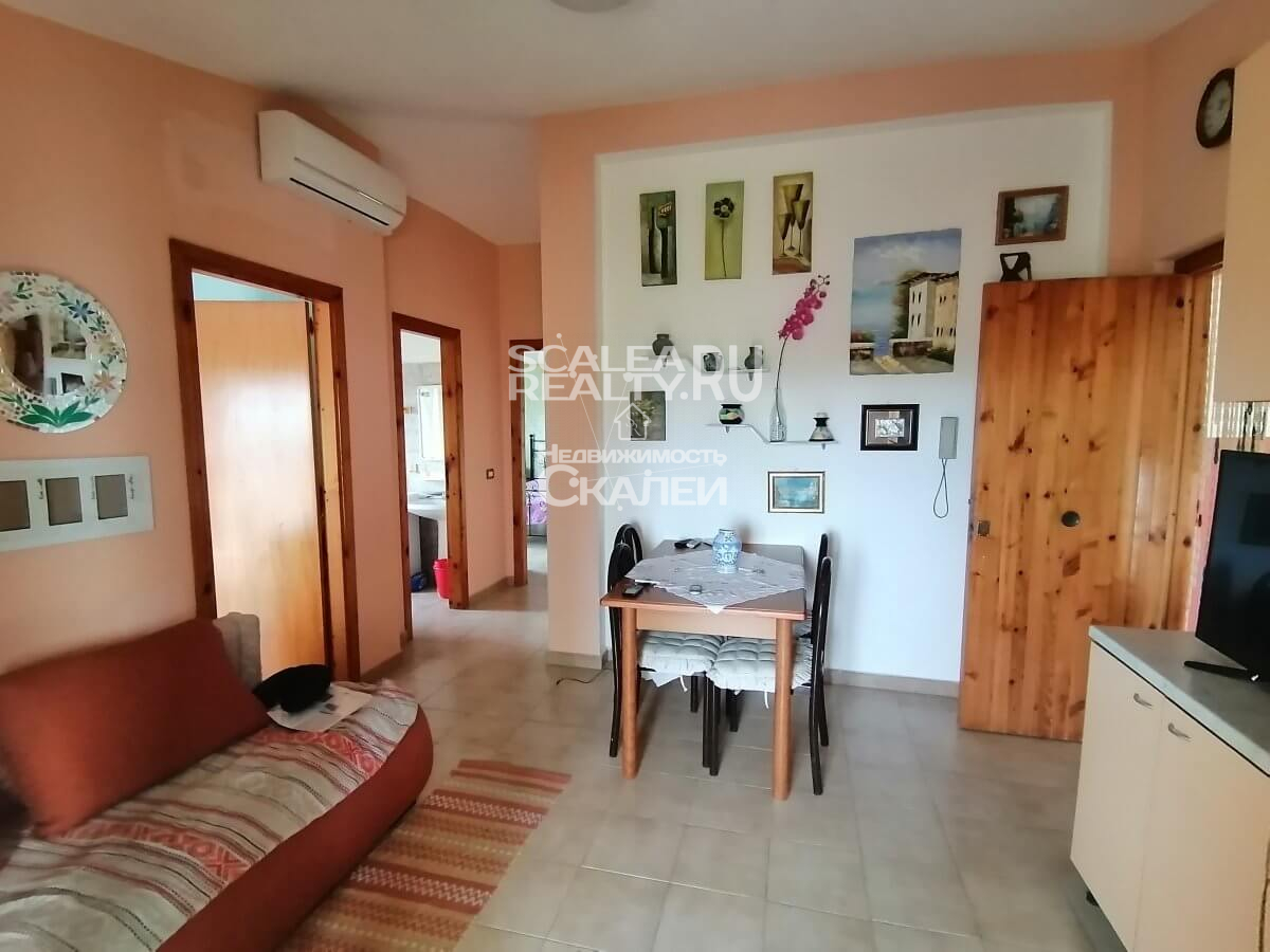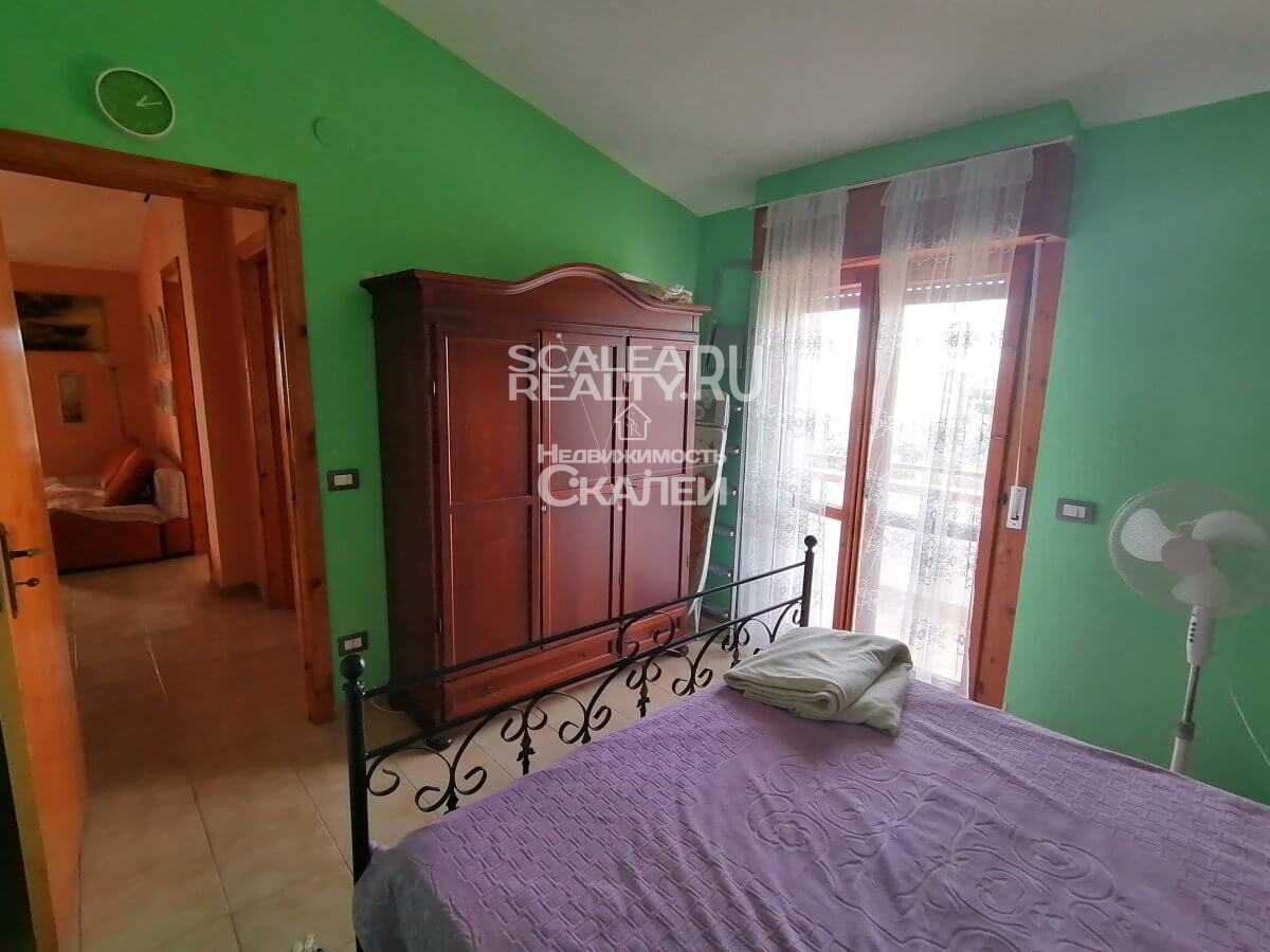 Мы рады предложить Вам великолепный вариант апартамента для отдыха и проживания в городе Скалеи. В далике от суеты, близко у моря, в шаговой доступности до всей инфраструктуры города, магазины, рестораны, бары, находится улица Magnia Greccia. Отдельная закрытая территория парка со своими парковками для машины. Жилая площадь квартиры 45 кв.метров и балкон 15 кв.метров. Находится квартира на третьем этаже. Следующая планировка : отдельная гостиная, кухня вынесена на застекленный балкон. Оттуда видно море и зеленые поля. Две полноценные спальни, ванная комната с душевой. Дорога до моря займет не более 3 минуты, что делает эту квартиру идеальной для отдыха. Отличный вариант для отдыха всем, кто ищет готовую квартиру у моря и по вполне доступной цене.