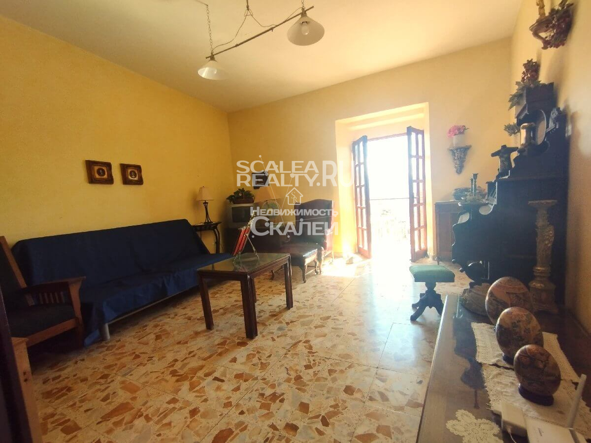 Пятикомнатная квартира площадью 120 кв.м в историческом центре города в 50 метрах от площади Cimalonga в здании 12 века. Гостиная с балконом с панорамным видом на море и город, две спальни, комната, столовая, кухня. В отличном состоянии. Расстояния до моря — около 1000 метров.
