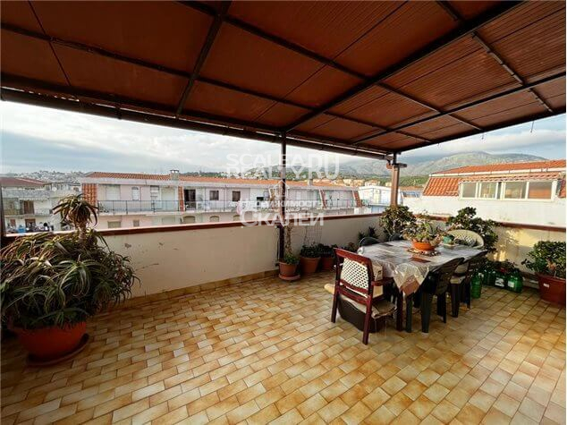 Для тех, кто хочет апартамент с хоршим видом, террассой, близко к морю по адекватной цене. Предлагаем Италию-это город Скалея. Продаем Вашему 360 градусов панорамного вида на море, город Скалея, закат солнца. Всего лишь 8 минут пешком к морю. Аппартамент находится в одностоящем доме на пятом этаже. Без лифта. Следующая планировка: есть прихожая, гостиная с кухней, камином, выходом на террасу 30 кв.метров. Две спальни и санузел с окном. На террасе возможно проводить большее время отдыха. Сделан капитальный ремонт. Открывается шикарный вид на достопримечательности. Не нужно подниматься в гору. Рядом местный "Арбат", продовольственный магазин "Интерспар". До центра всего лишь 5 минут.