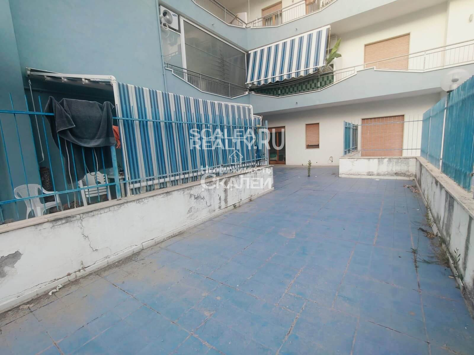 Предлагаем Вам ознакомиться с нашим новым предложением на рынке недвижимости побережья Тирренского моря (Калабрия) в городе Скалея. Закрытая территория пятиэтажного жилого комплекса "Весна" находится в хорошем районе с развитой инфраструктурой всего навсего в 100 метрах от моря. Прекрасная новая набережная городка позволит прекрасно провести время на море. Квартира на цокольном этаже. Площадь квартиры составляет около 115кв.метров и террассы 30кв.метров с видом во двор с прекрасными зелеными лужайками и фонтаном. Планировка следующего типа: есть коридор при входе, отдельная кухня, просторная гостиная , с выходом на балкон, две спальни, санузел и кладовка. Большая террасса 30 кв.метров. Квартира большая, уютная и светлая.