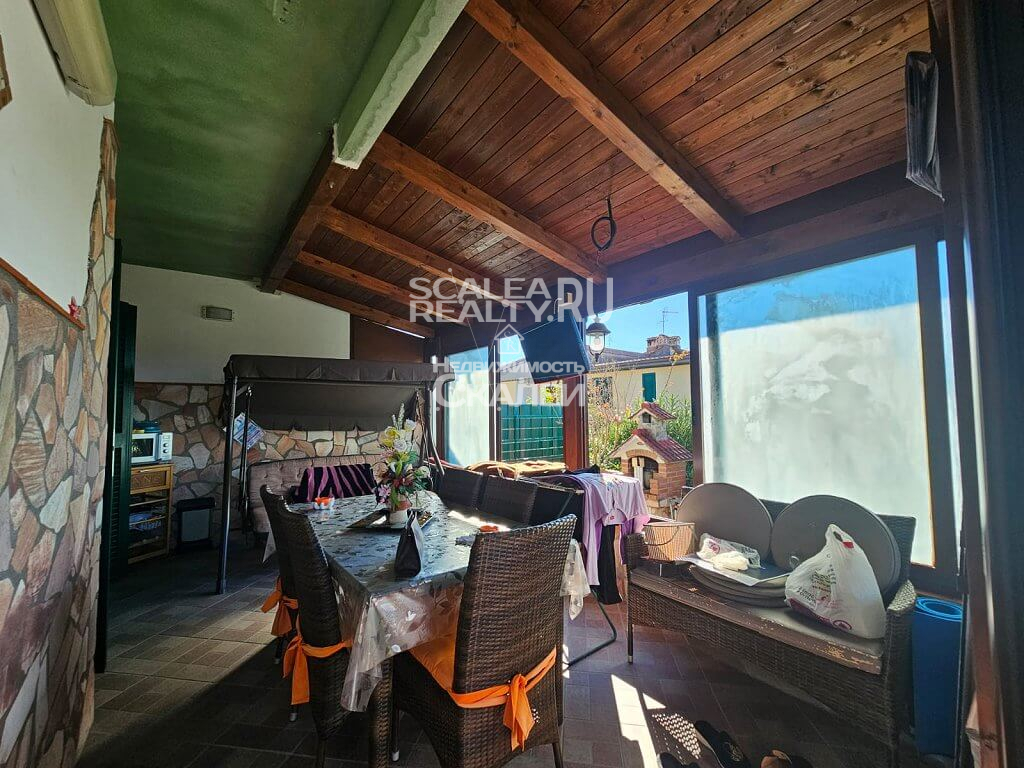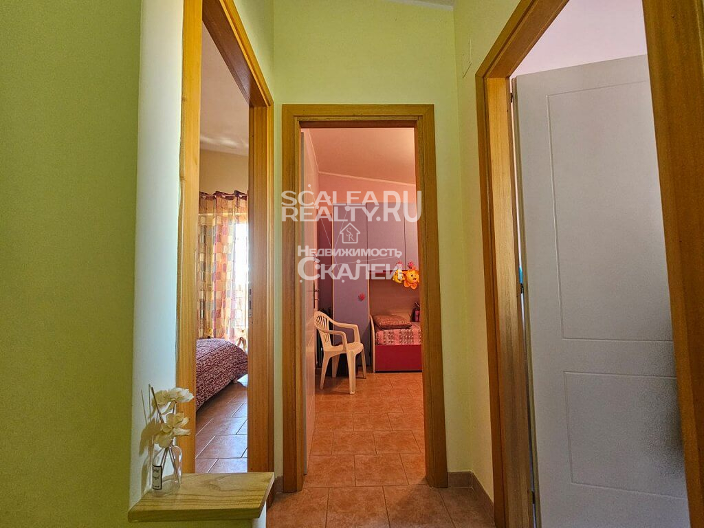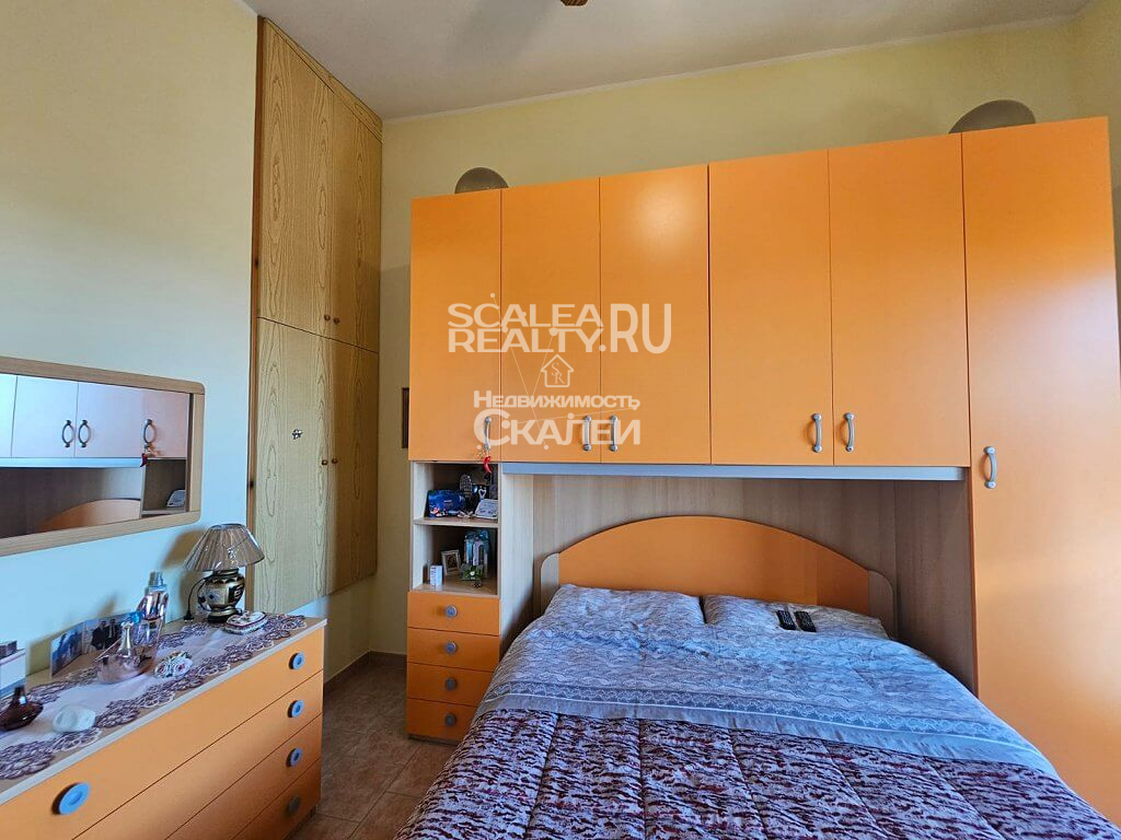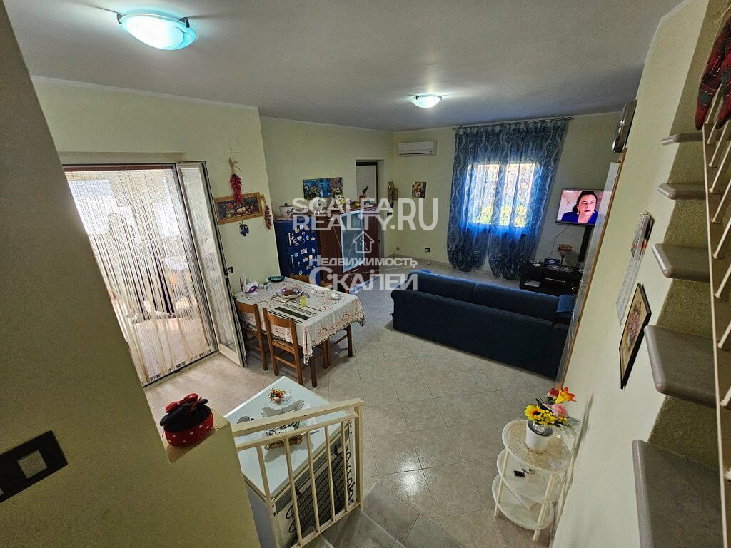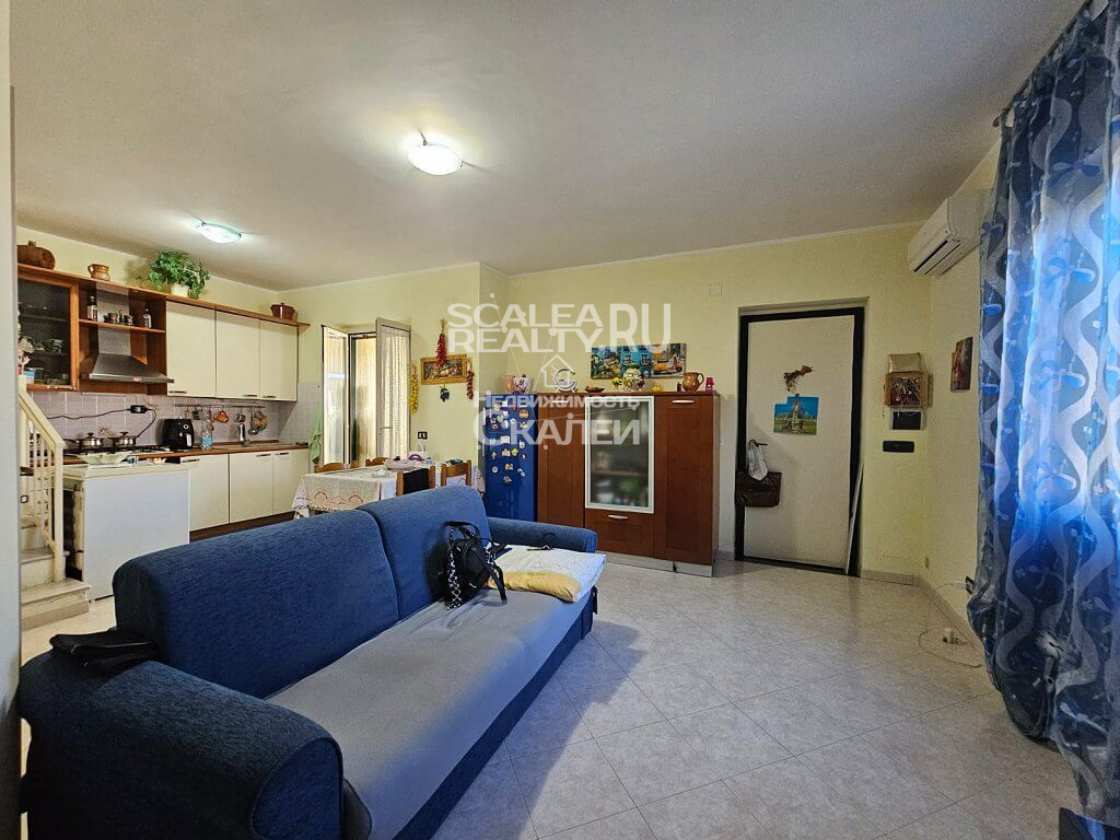 Если Вы ценитель комфорта и спокойного образа жизни, желаете жить и отдыхать райском уголке, с великолепной природой и, буквально, вблизи моря, без шума машин и городской суеты – это предложение идеально для Вас. Скалея, предлагаем вашему вниманию часть дома в жилом комплексе "Parco Roma". Виллы расчитана на четыре семьи. Каждая из которой имеет отдельный вход угловой земельный участол около 40 квадратных метров, почти полностью выложенный плиткой, с душем на открытом воздухе, барбекю и с возможностью въезда на машине во двор.Следующая планировка: при входе располагается гостиная с кухней и санузел. На второй этаж ведет лестница, где есть 2 спальни и второй санузел. Также есть 2 балкона, застекленная веранда. Вилла полностью меблирована. Есть кондиционер. Год постройки: 2000. Годовая плата за обслуживание комплекса : около 200 евро. Дистанция 1,5 км до пляжа. На территории жилого комплекса имеется прекрасный полисадник, свободные стоянки для авто.