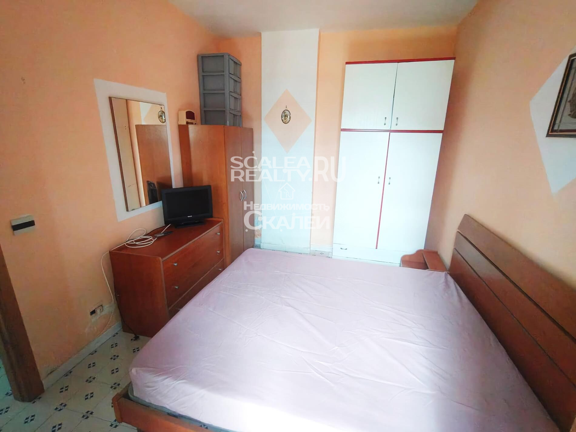 В самом известном курорте города Скалеи по ул. Campo Volo, в жилом закрытом комплексе "Pantano" предлагаем к продаже апартамент на 4 этаже. Жилая площадь составляет 45 кв.метров. Большая солнечеая терраса около 40 кв.метров с видом на город и море. Квартира имеет следующую планировку: просторная гостиная с кухней и выходом на первый балкон, коридор, большая спальня, детская и санузел.
