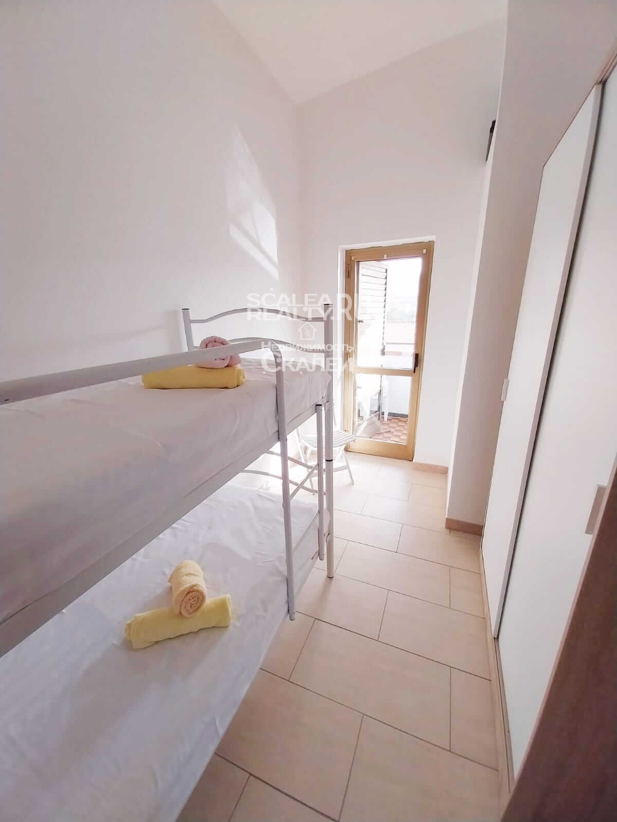 Наше предложение расположено по улице Enrico De Nicola в одностоящем доме без лифта. Фасад дома был отреставрирован недавно. Пятый этаж-это значит, что нет никого над головой. Жилая площадь квартиры около 50 кв.метров, площадь террасы 8 кв.м. Расположение квартиры очень комфортное, развитая инфраструктура, непосредственная близость различных объектов культурного и бытового назначения, по достоинству оценят, как любители спокойного отдыха, так и те, кто предпочитает активный образ жизни. Планировка: просторная и светлая гостиная с кухней, две спальни с выходом на панорамный балкон. При желании на террасе можно создать уютную зону отдыха, которая располагает к посиделкам с друзьями, душевным беседам в кругу семьи, приему гостей. Квартира меблирована, порсле капитального ремонта. Находится всего в 15 минутах ходьбы от пляжа неспешным шагом, что делает эту квартиру идеальной отдыха и проживания, или сдачи в аренду. Отдых вдали от больших городов и промышленных предприятий, наслаждение от чистого моря и свежести леса, это здоровье и радость для вас и ваших детей! Парковка для машин открытого типа.