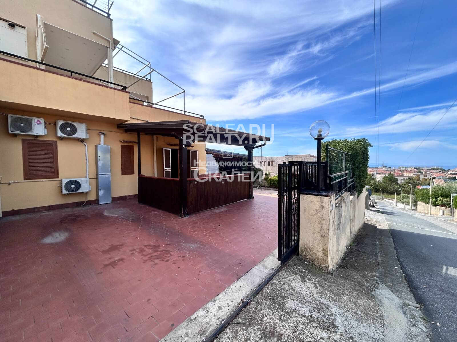 Скалея, улица Сандро Пертини, квартира на первом этаже площадью 86 кв. м с отдельным входом. Квартира включает в себя: отдельный угловой дворик площадью 80 кв. м с душем и раковиной на открытом воздухе, а также крытую парковку; гостиную с мини-кухней, три спальни и две ванные комнаты. Система горячего водоснабжения (сжиженный газ). Новая электропроводка. Кондиционер. Закрепленное парковочное место. Примерно в 2 км от моря.