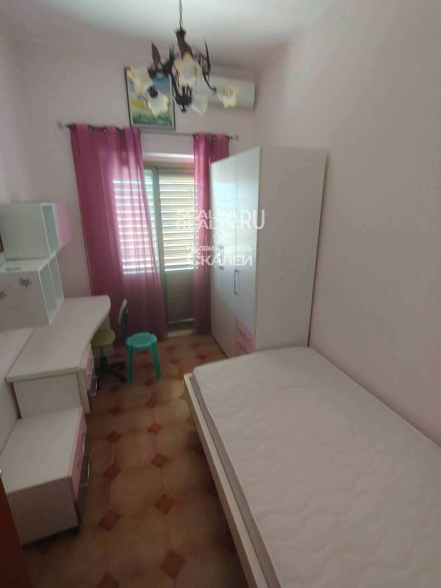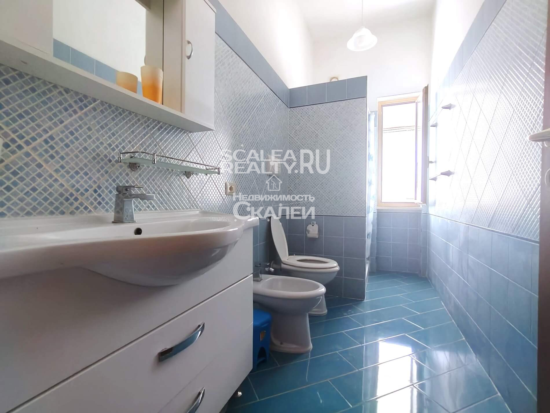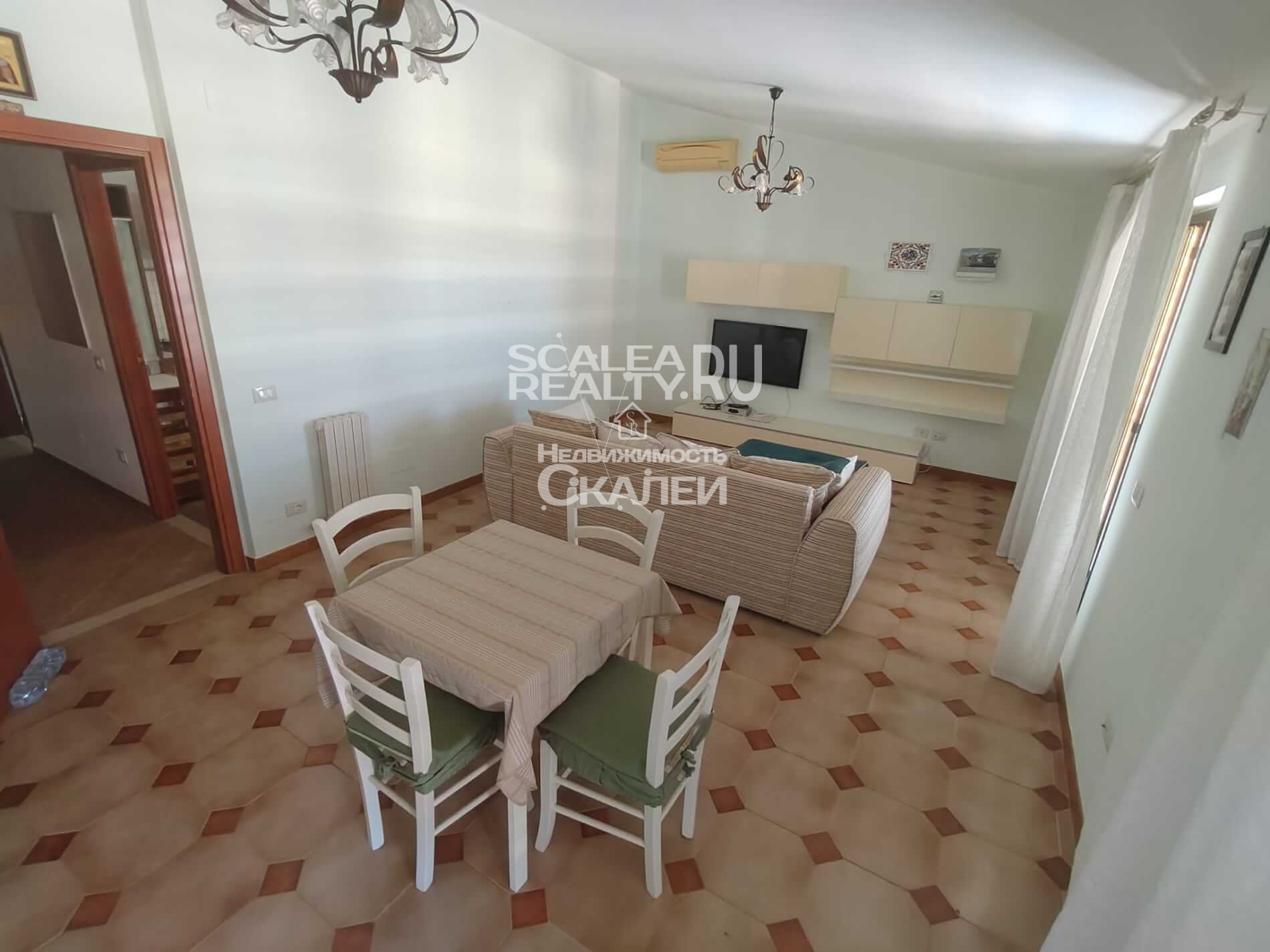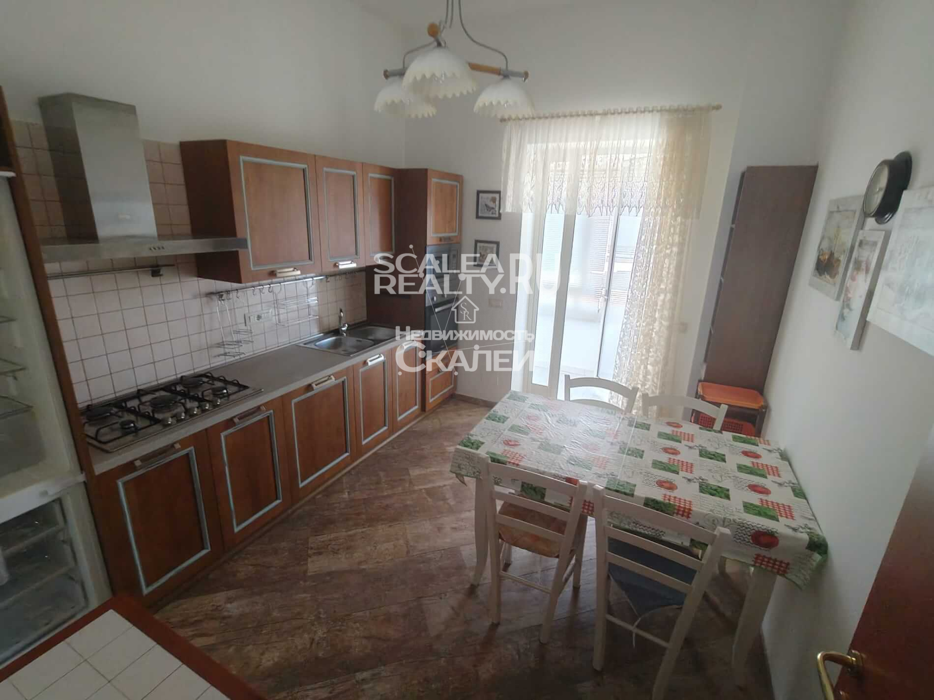 Продается шикарная квартира в самом популярном жилом комплексе города Скалеи. Третья береговая улица via Lauro. Море находится в 400 метрах. Вышли из дома и по прямой 400 метров находится море. Фасад дома был сделан недавно. Живут только резиденты города Скалеи. Чистый подъезд, отличные соседи. Есть лифт. Квартира находится на 5 этаже. Имеет Есть автономное отопление, новая дорогая мебель, стеклопакеты. Новый ремонт.