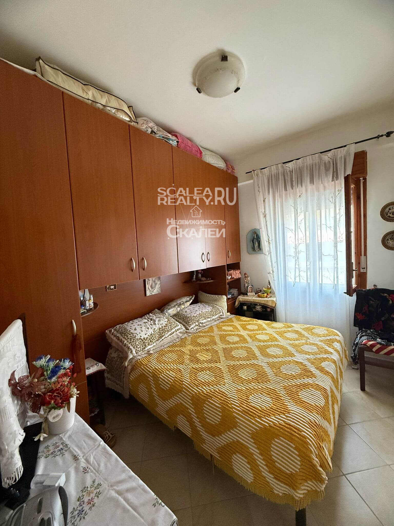 Предлагаем Вам ознакомиться с нашим новым предложением на рынке недвижимости побережья Тирренского моря в городе Скалея. Замечательная, недорогая трехкомнатная квартира с капитальным ремонтом. Пятиэтажный дом находится в хорошем районе с развитой инфраструктурой всего навсего в 600 метрах от городского пляжа. Есть свой двор, закрытая территория. Дом после капитального ремонта. Квартира на 3 этаже, в доме без лифта. Площадь квартиры составляет около 45 кв.метров + 10 кв.метров балконы. Один из которых застеклен и вынесена кухня. Планировка следующего типа: есть прихожая при входе, просторная гостиная, санузел с окном, днтская, большая спальня. Сделан капитальный ремонт. Квартира просторная и очень светлая. Развернута на юг. Рядом находится "Конад". До моря пешком 15 минут.