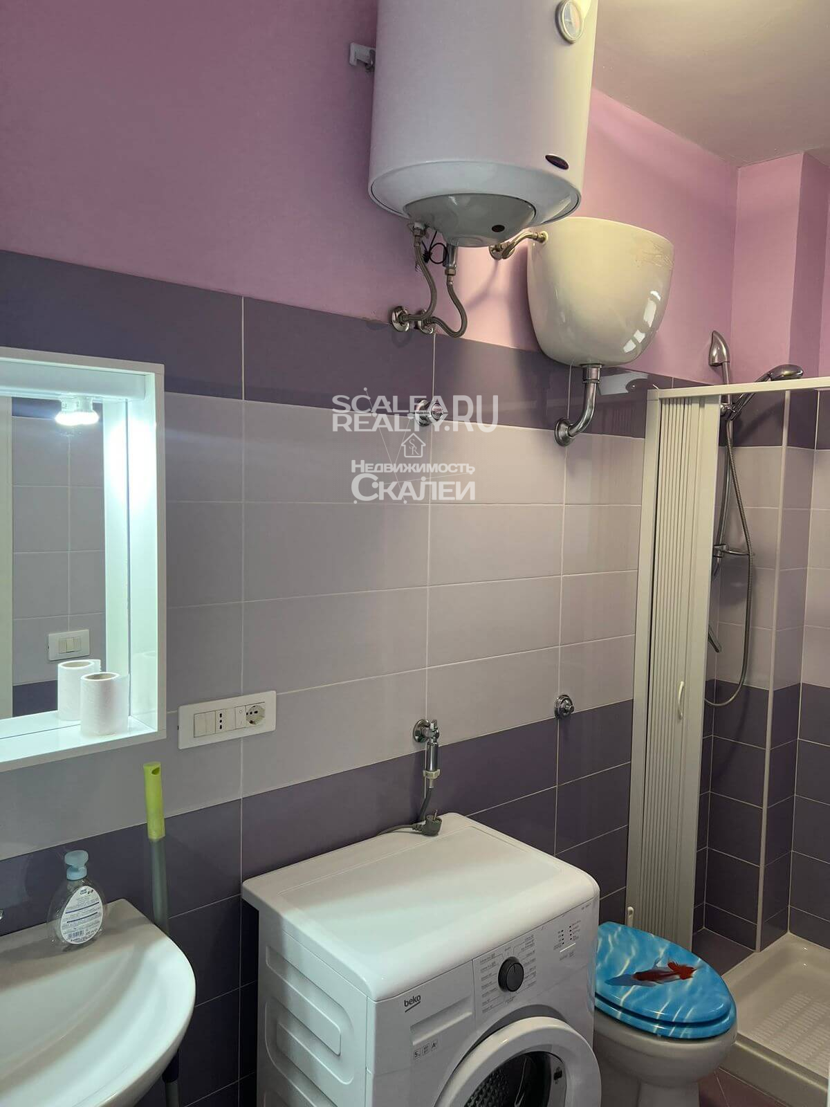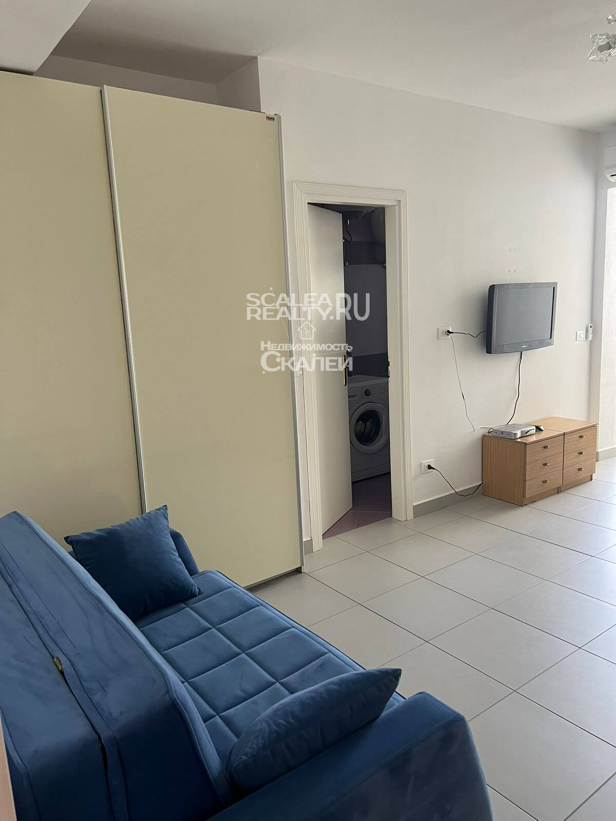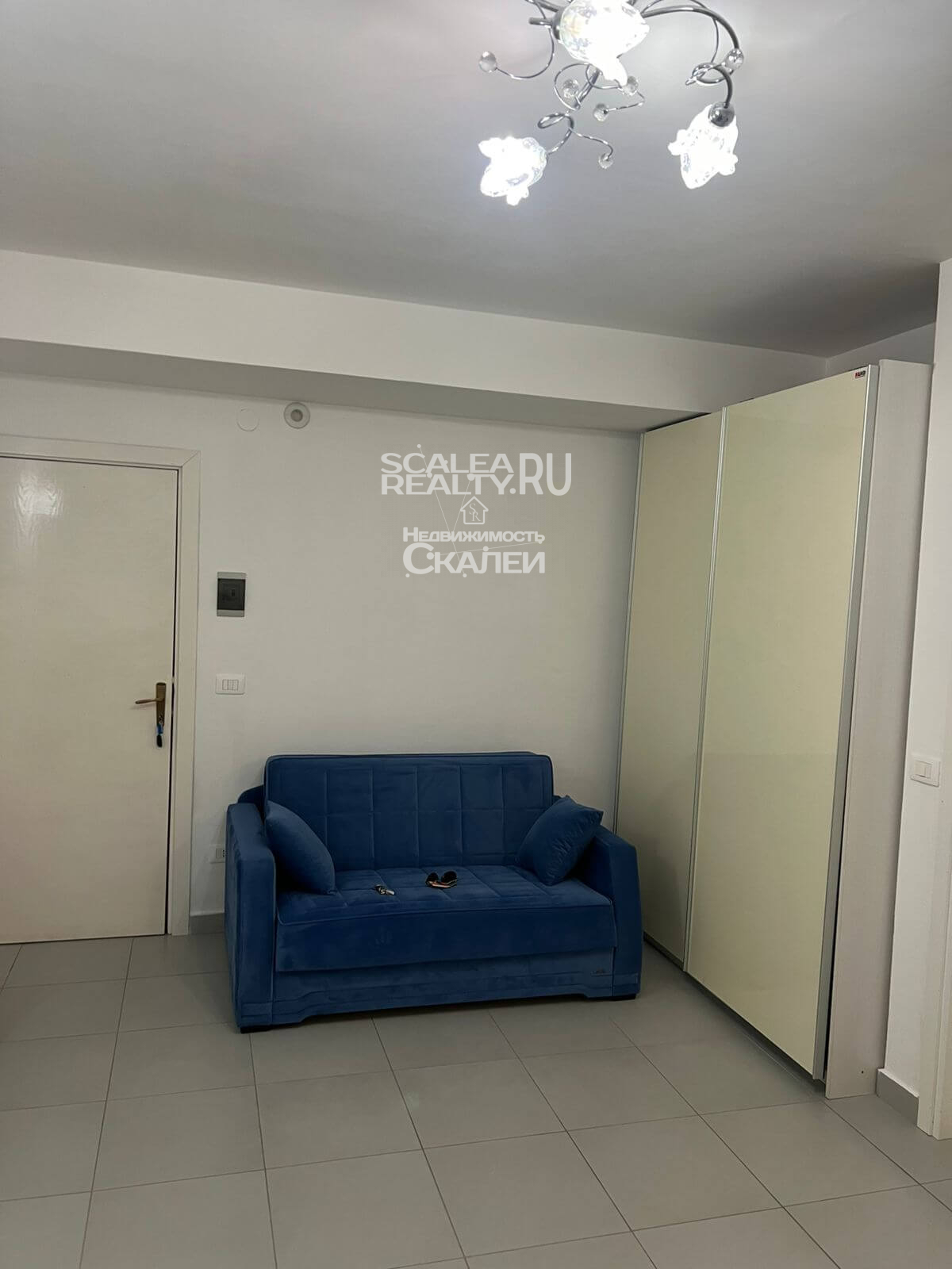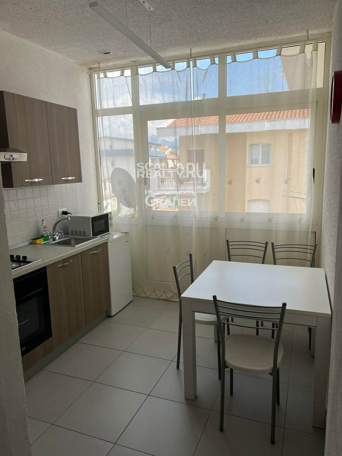 В самом известном курортном городе Италии, Скалея предлагаем вашему вниманию к продаже квартиру-студия в 200 метров от пляжа. Общая и жилая площадь составит 40 кв.метров. Этаж 4 пятиэтажного дома. Недавно был сделан фасад дома. Сделан каптальный ремонт. Стоят стеклопакеты. Следующая планировка: просторная одна боьшая комната, кухня стоит на застекленном балконе. Жилой комплекс с парковочной зоной называется "СОЕВЕ". До моря пешком 5 минут. Через дорогу находится "Деспар".