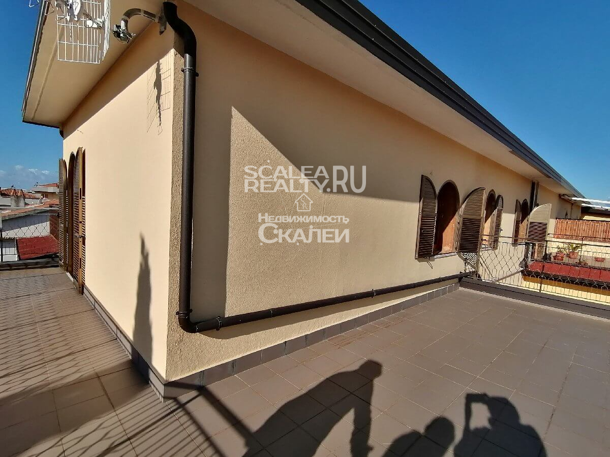 Два в одном. Шикарные панорамные террасы более чем 100 кв.метров. Жилая площадь пенхауса около 100 кв. метров. В городе Скалея в 100м от пляжа предлагаем пенхаус готовый к проживанию. Отреставрированный фасад дома. На площадке всего две квартиры. Меняйте квартиру на Итальянскую дачу и на всю оставшуюся жизнь радуйтесь своему выбору. Квартира в Италии, на море, да еще с такими террасами, иожет предложить только один дом в Скалее. Следующая планировка: огромная гостиная с камином, кухня с выходо н первую террасу 20 кв.метров. Длинный коридор и следуют три спальни и санузел с ванной. Есть отопление. Все террасы выходят на разные части света. Мебель забирают частично.