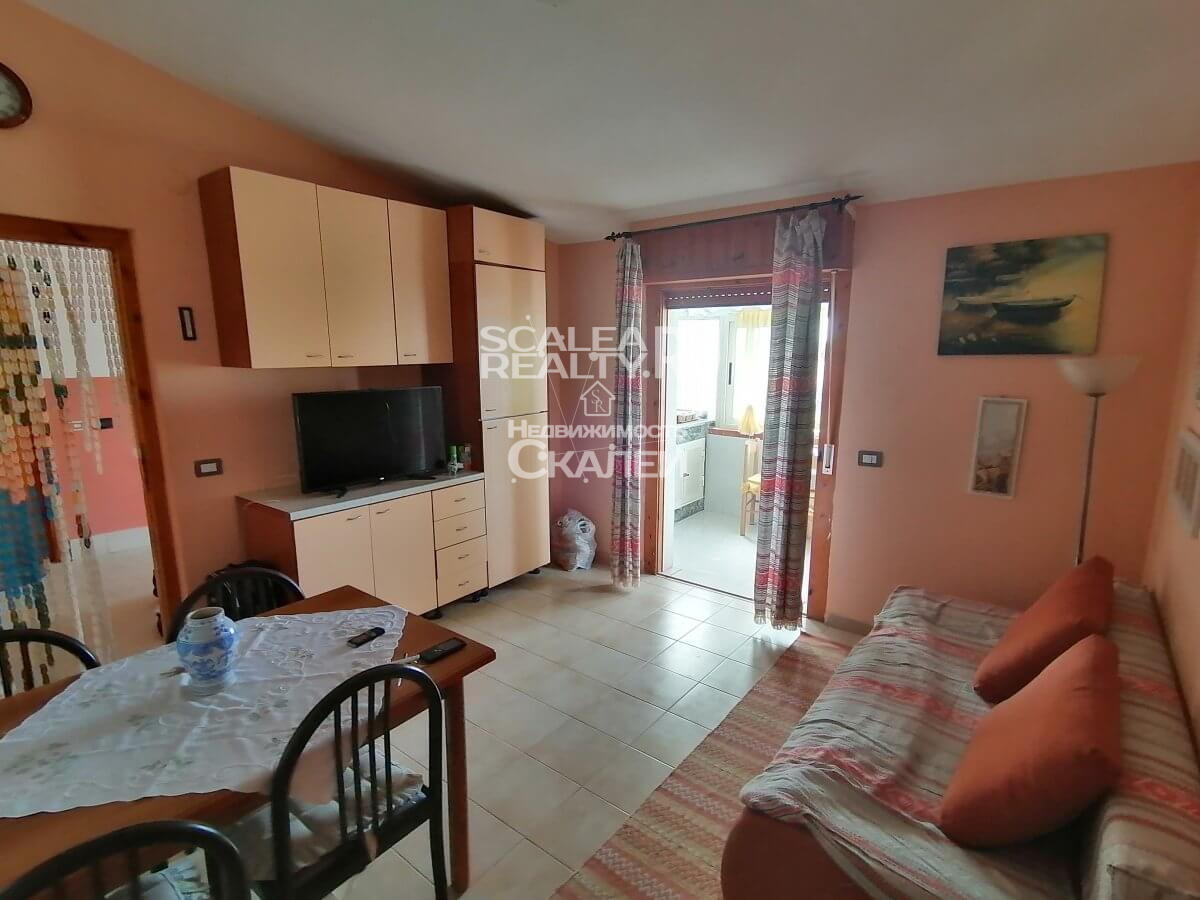 Мы рады предложить Вам великолепный вариант апартамента для отдыха и проживания в городе Скалеи. В далике от суеты, близко у моря, в шаговой доступности до всей инфраструктуры города, магазины, рестораны, бары, находится улица Magnia Greccia. Отдельная закрытая территория парка со своими парковками для машины. Жилая площадь квартиры 45 кв.метров и балкон 15 кв.метров. Находится квартира на третьем этаже. Следующая планировка : отдельная гостиная, кухня вынесена на застекленный балкон. Оттуда видно море и зеленые поля. Две полноценные спальни, ванная комната с душевой. Дорога до моря займет не более 3 минуты, что делает эту квартиру идеальной для отдыха. Отличный вариант для отдыха всем, кто ищет готовую квартиру у моря и по вполне доступной цене.