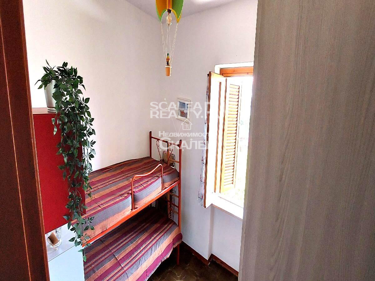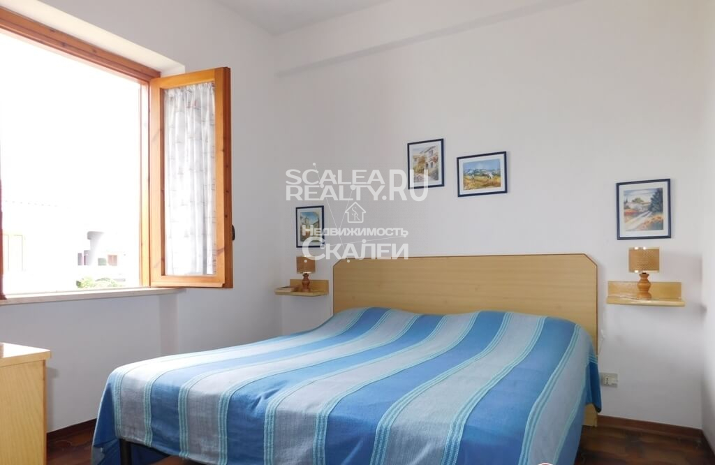 В известном городе Скалея в закрытом жилом комплексе "Scalea - 2000" предлагаем к продаже виллету. Это вторая улица от пляжа, Fiume Lao. Имеет отдельный вход и собственный земельный участом около 20 кв.метров. На второй этаж ведет лестница, есть террасса при входе, где модно проводить летние трапезы. Жилая площадь составляет 45 кв.метров. Следующая планировка: гостиная с кухней, две спальни и санузел. Новая мебель. Дистанция до моря около 5 минут ходьбы, до супермарке "Деспар" в 100м. Здесь вы оцените по достоинству все плюсы комфортного отдыха на морском берегу Тирренского моря. В квартире есть все необходимое для проживания, полностью меблирована. Всего шесть спальных места.