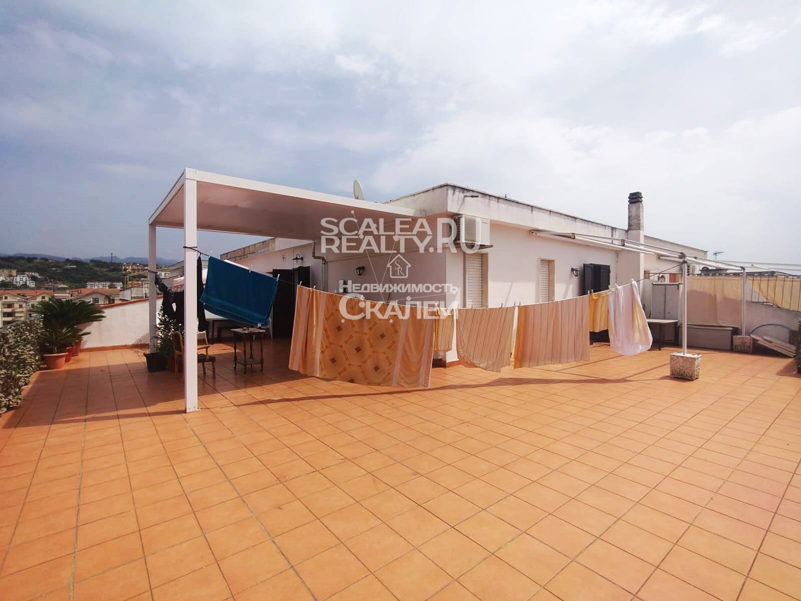 Предлагаем Вашему вниманию таунхаус с шикарной террассой, единственной в городе Скалее. Дом расположен в центральной зоне города по улице Lauro, рядом вся необходимая инфраструктура. По близости расположены магазины, супермаркеты, исторический центр города. Дистанция до пляжа 400 метров. Квартира расположена в доме с лифтом на пятом этаже. Квартира находится в отличном состоянии. Состоит из: отдельная гостинная с кухней, большая спальня, детская, санузел с ванной. Квартира имеет собственную террассу 80 кв.метров с прекрасным видом на достопримечательности города и горы. Жилая площадь квартиры около 50 кв.метров. В доме проживают только резиденты города. Стоянка авто у дома.