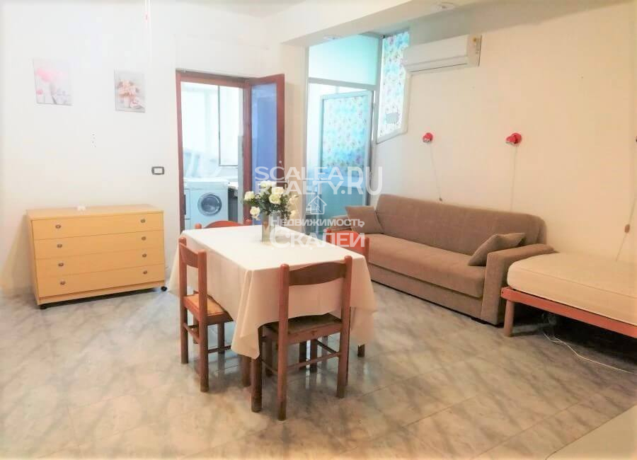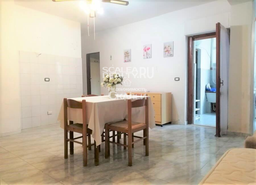 В городе Скалея, рядом с ЖД вокзалом предлагаем апартамент на первом этаже большого размера, около 40кв.м. Не нужно подниматься по ступенькам. Удобное расположение и низкий этаж - идеально для пожилых людей и семьи с маленькими детьми. Дом находится на равнине и до жд вокзала. Закрытая территория парка, собственная парковка на территрии и очень выгодная цена. Бронированная дверь, кондиционер, новая кухня были поставлены в этом году. Планировка следующая:очень просторная гостиная с кухней и выходом на террассу 4кв.м.,где находится летняя кухня. Новый санузел и просторная спальня. Дистанция до моря около 800м, магазина и булочной-300м