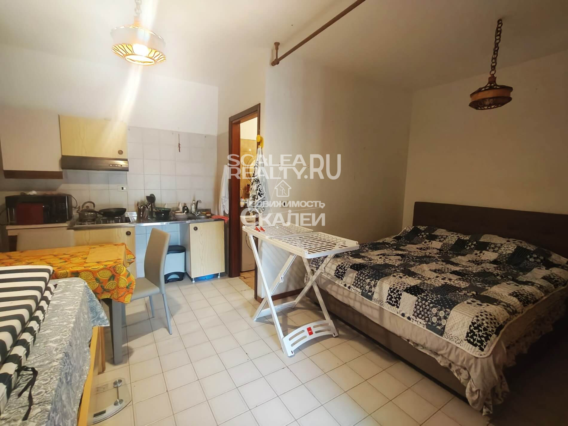 Выгодный вариант цены и качества. В городе по улице Faro, в жилом комплексе "La Bussola" предлагаем однокомнатную квартиру расположенную на 1 этаже с большим двором. Продается с мебелью. Ухоженная территория комплекса, полная тишина и свежий воздух. Рядом есть футбольное поле, летний ресторант. Есть отдельный вход через собственный сад, уложенный плиткой. Мини -апартамент около 27кв.метров жилой площади и около 30 кв.метров садика. Садик практически не виден. Удобно находится вдали от людского взгляда. Квартира имеет следующую планировку: при входе большая гостиная с кухней, справа стоит двухспальная кровать, санузел с окном. При желании можно сделать отдельную спальню. Продается с мебелью. До моря и магазинов около 15 минут пешком.