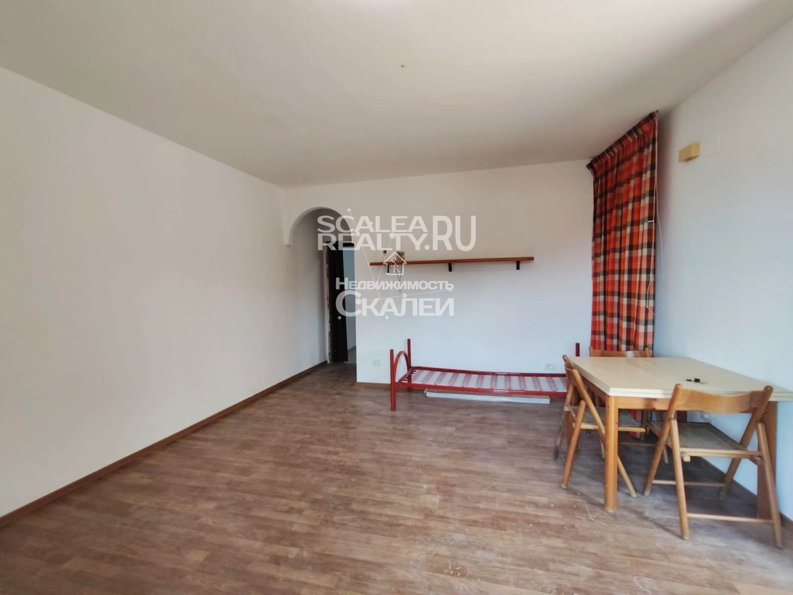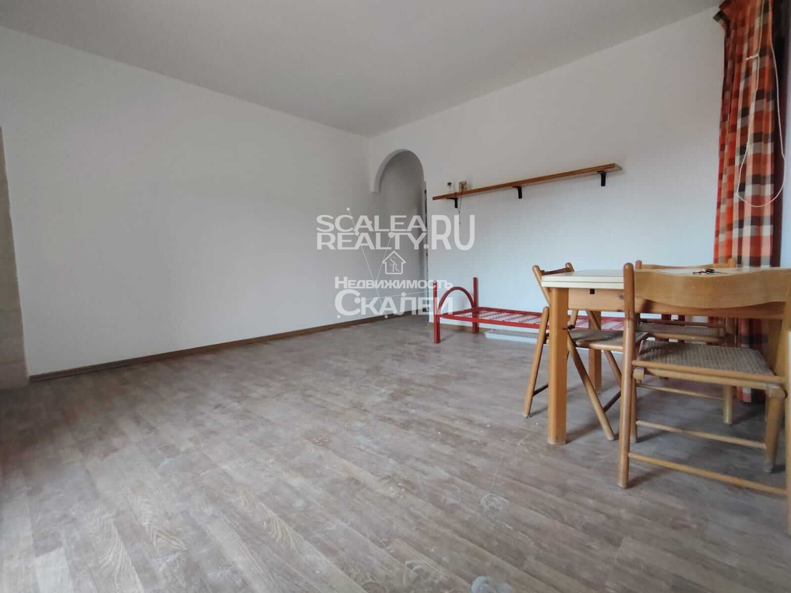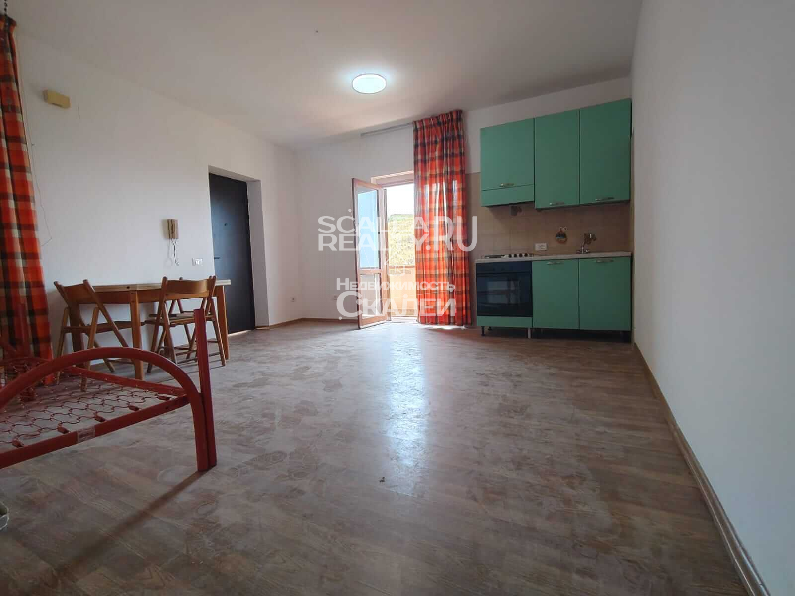 Двухкомнатная квартира имеет следующую планировку: просторная гостиная с выходом панорамный балкон, коридор, небольшая спальня, длинный санузел с окном. Прямой вид на Историческую часть города Скалеи и море. Апартамент находится в хорошем состоянии. Частично отремонтированный аппартамент. Дистанция до центра города и до моря около 10 минут пешком.