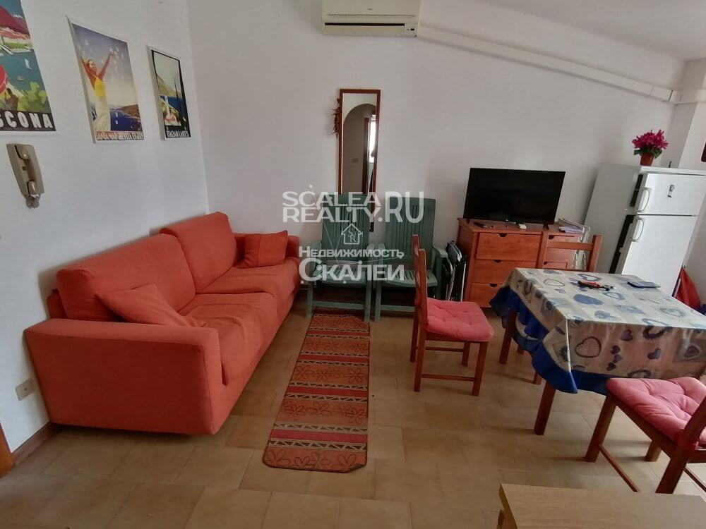 Предлагаем в аренду квартиру в Скалее, расположенную по улице Питагора. Дистанция до моря 600 метров. Находится апартамент на 5 этаже в доме без лифта. Жилая площадь квартиры 45 кв.метров и балконы.